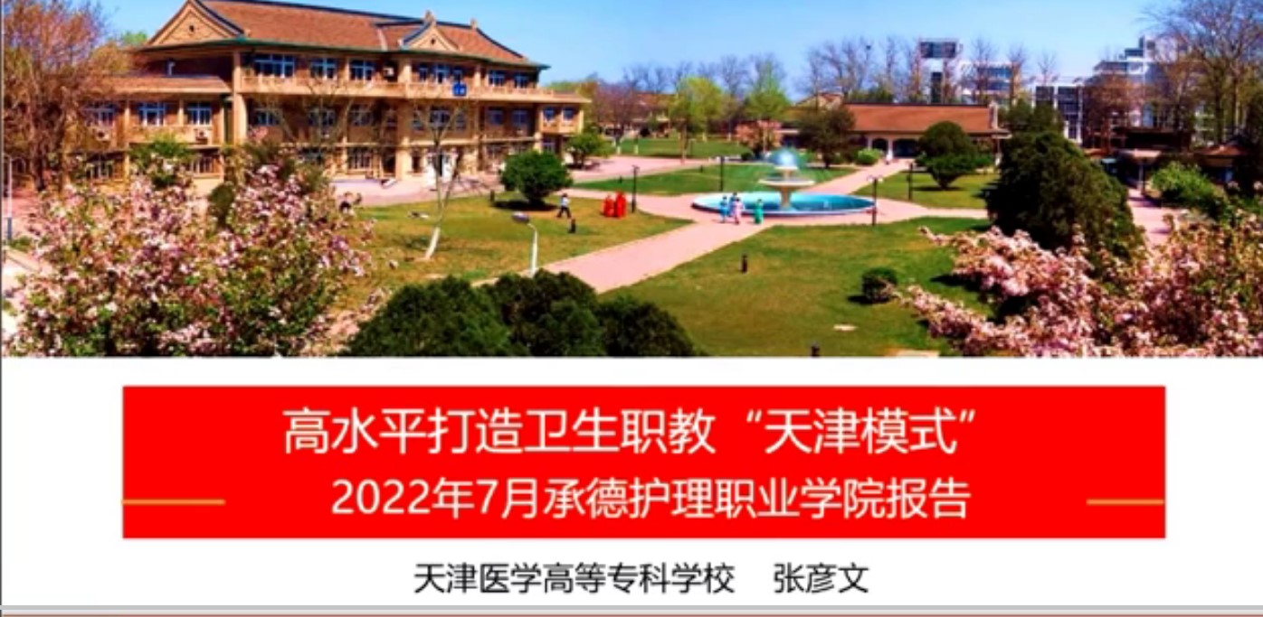 为全面提升教师教育教学水平,7月28日上午,beat365特邀天津医学高等专科学校张彦文校长为beat365全体教师以“高水平打造卫生职教天津模式”为题做学术讲座。会议采用腾讯会议线上的方式进行。讲座由党委副书记、院长单伟颖主持。
