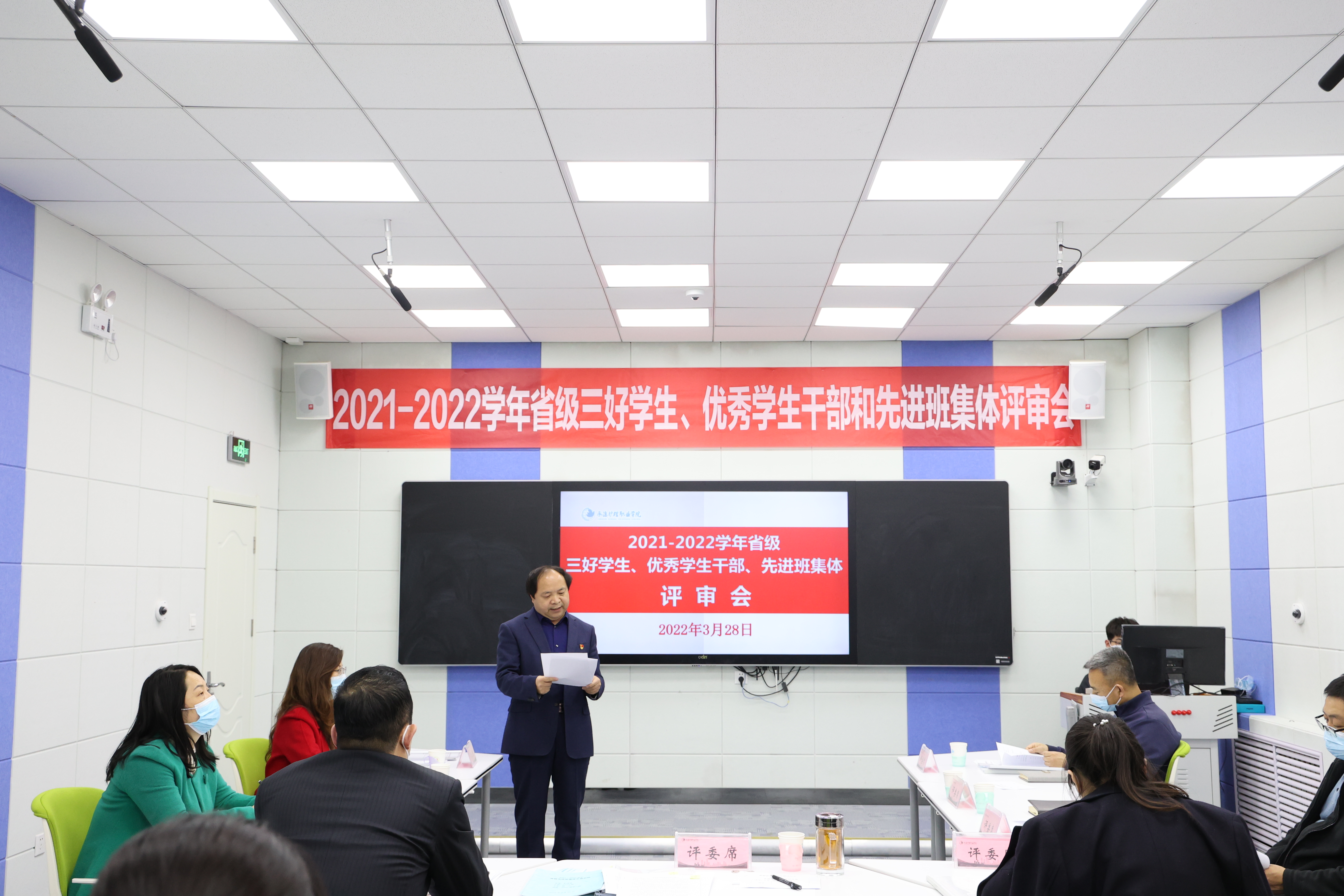 3月28日下午,学生处在智慧教室组织开展2021-2022学年省级三好学生、优秀学生干部和先进班集体评选活动,全体在校辅导员、班主任现场观摩学习。各系部主要负责人、学校纪检监察室人员担任评委。