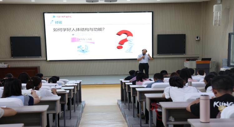 本次示范课是基础部解剖教研室集体备课的成果展示,由诸清华老师现场讲授。课上,诸老师从承德历史文化、学校办学特色、专业前景等方面谈起,引出了《人体解剖结构与功能》的课程,然后又以生动的讲解和丰富的案例讲述了第一章的内容。现场气氛热烈,互动积极。
