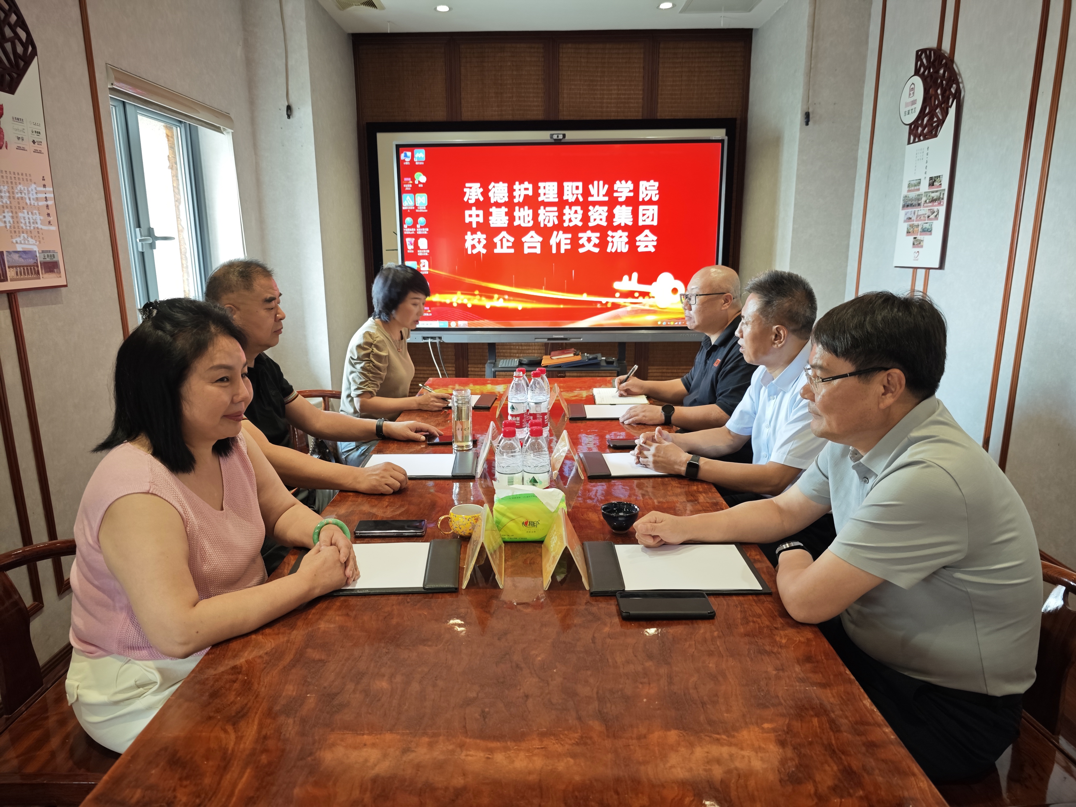 在南昌中基地标投资集团总部,校企双方召开了校企合作工作推进会,双方就校企深度合作、加快推动产教深度融合方面进行了座谈。