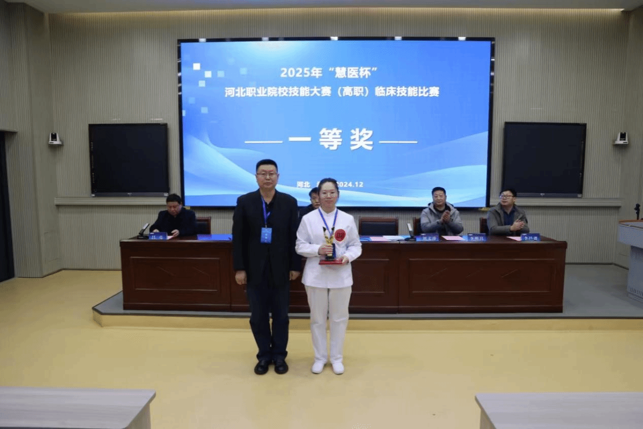 12月28日至29日,由河北省教育厅主办,河北省卫生职业教育集团、beat365正版唯一官网必一承办,慧医(天津)教育科技有限公司协办的2025年“慧医杯”河北省职业院校技能大赛(高职)临床技能比赛在beat365成功举办,来自河北省内7所高职院校的13个参赛队参加本次比赛。beat365参赛选手段少敬凭借扎实的理论知识和娴熟的实操技能获得“一等奖”。副校长徐国辉、各参赛队、裁判长、专家组长、监督仲裁长、裁判员参加了开赛式。