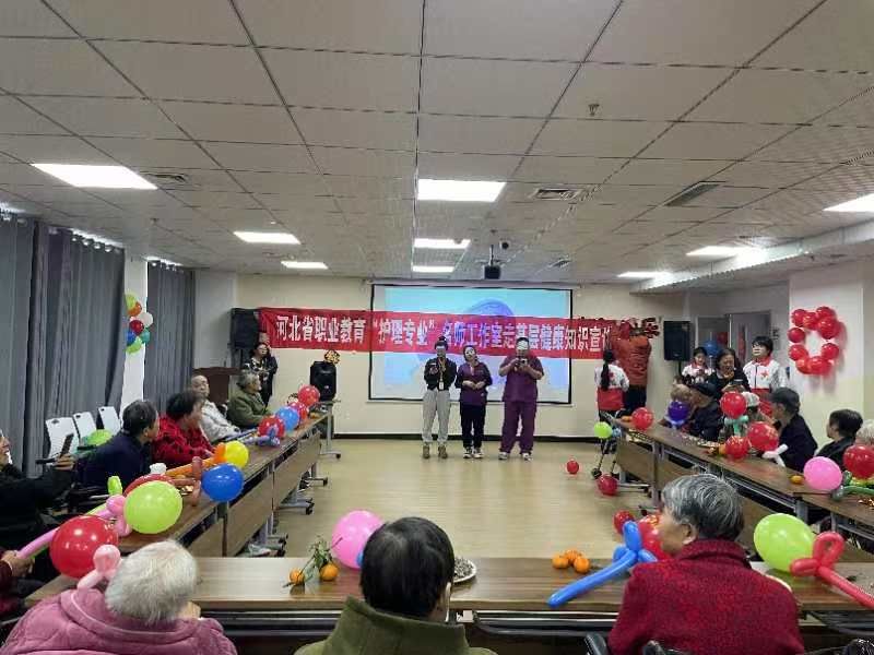 活动中,工作室成员(护理专业师生)代表首先为康养中心老年人做了两场适宜的冬季养生保健知识、老年人常见慢病冬季保健知识宣讲并为老年人表演了精彩的歌舞节目。
