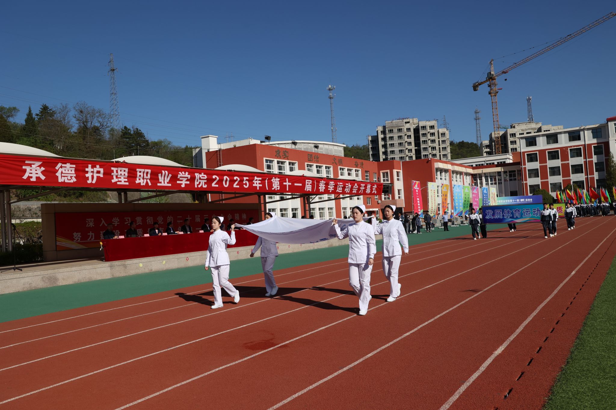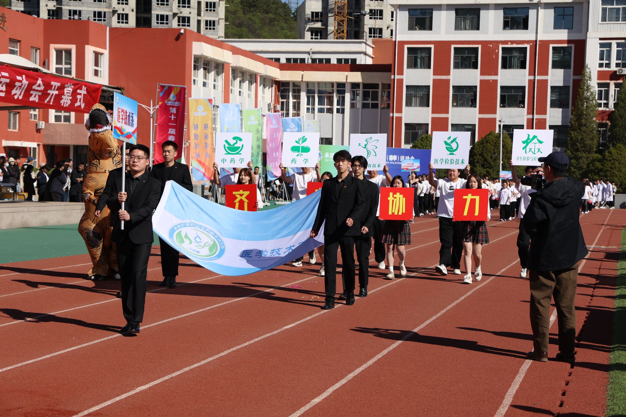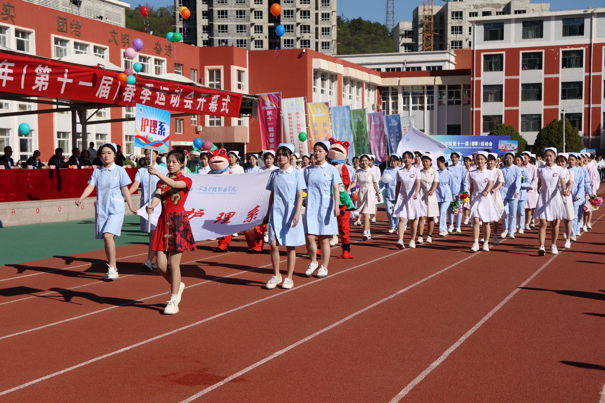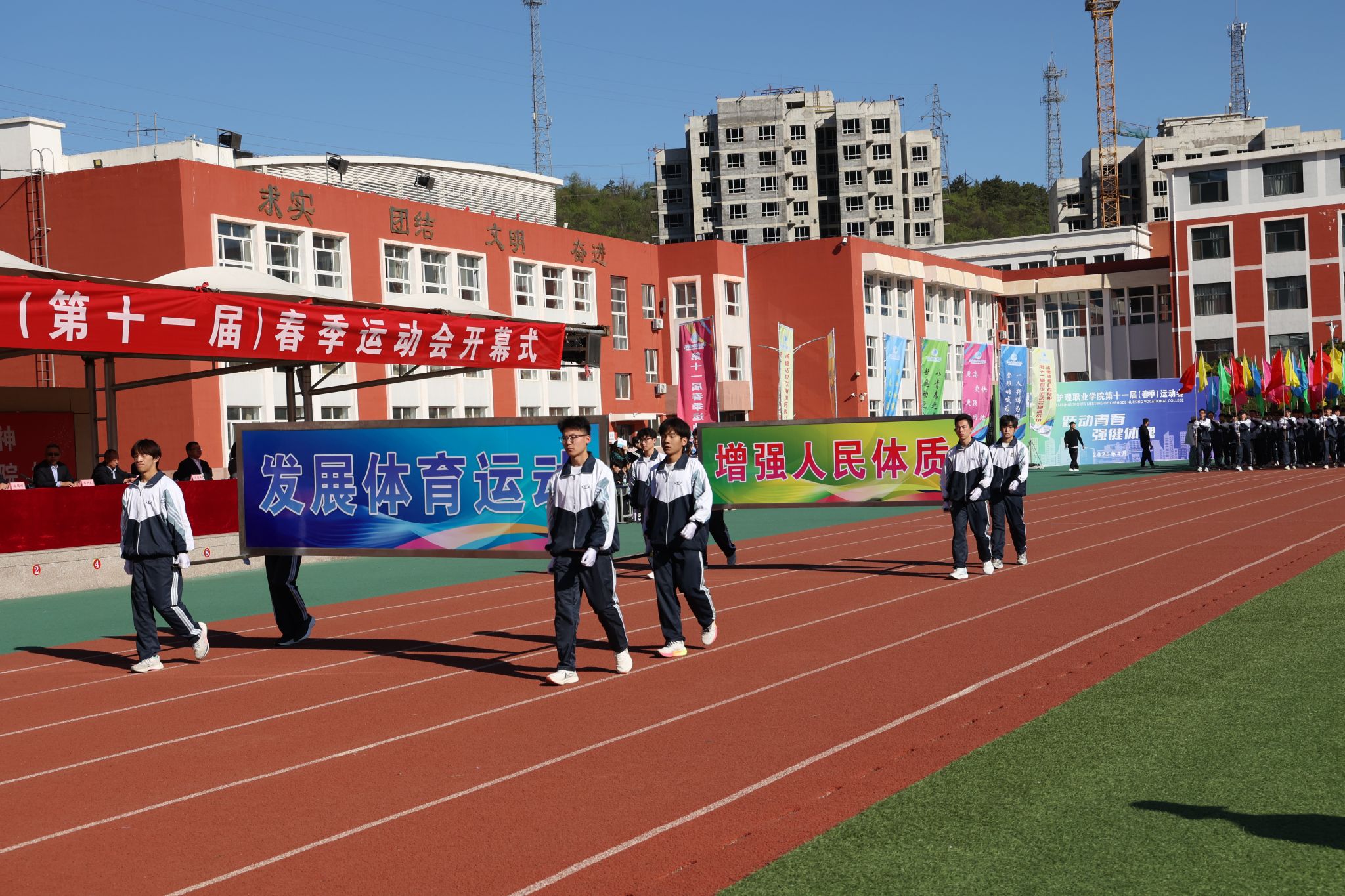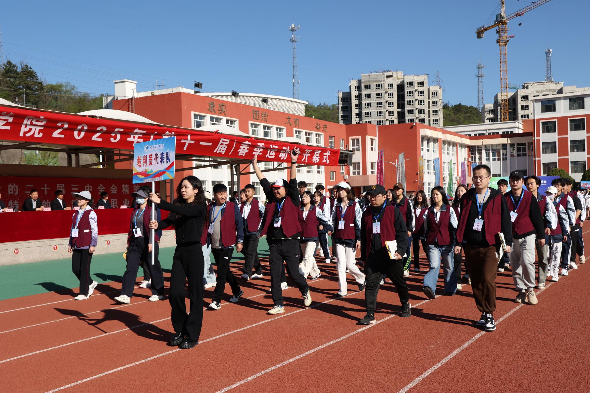 4月28日至29日,学校举办第十一届春季运动会。党委班子成员和相关部门负责人出席开幕式。校党委书记苏永民宣布:“beat365正版唯一官网必一第十一届春季运动会开幕!”,副校长徐国辉致开幕词,开幕式由副校长崔艳华主持。4月29日,校长单伟颖在闭幕式上致辞。本届春季运动会设立学生组、教工组共18个项目竞赛,1400余名师生同场竞技,展现昂扬向上的精神风貌。