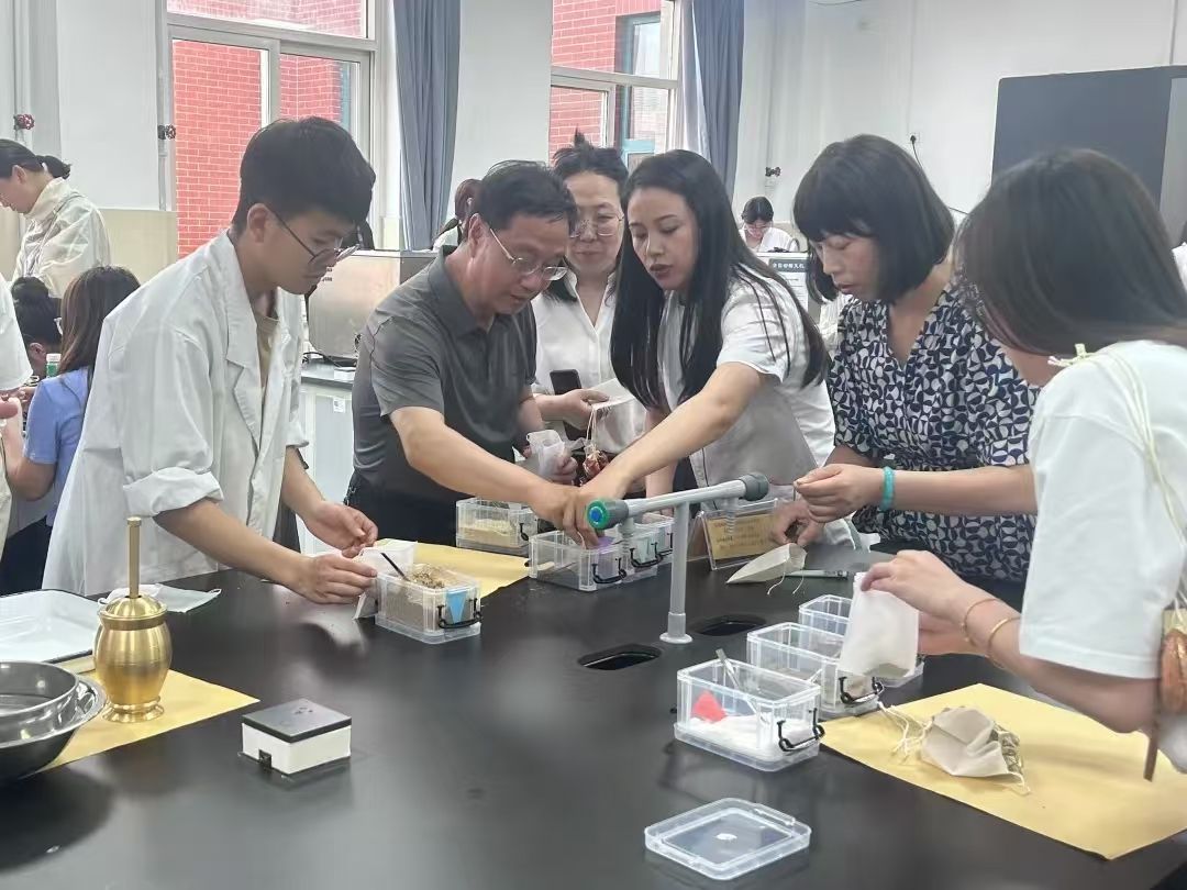活动以"诗韵端午"开场,"寻找屈原的诗魂"趣味竞赛中,参与者重组诗句,感悟爱国诗人风骨。"闻香识药"环节,师生通过盲盒抽取艾叶、白芷、薄荷等药材辨识,现场药香萦绕。大家还动手制作香囊、编织五彩绳,让端午文化在校园焕发新生,实现文化育人内涵的深化。