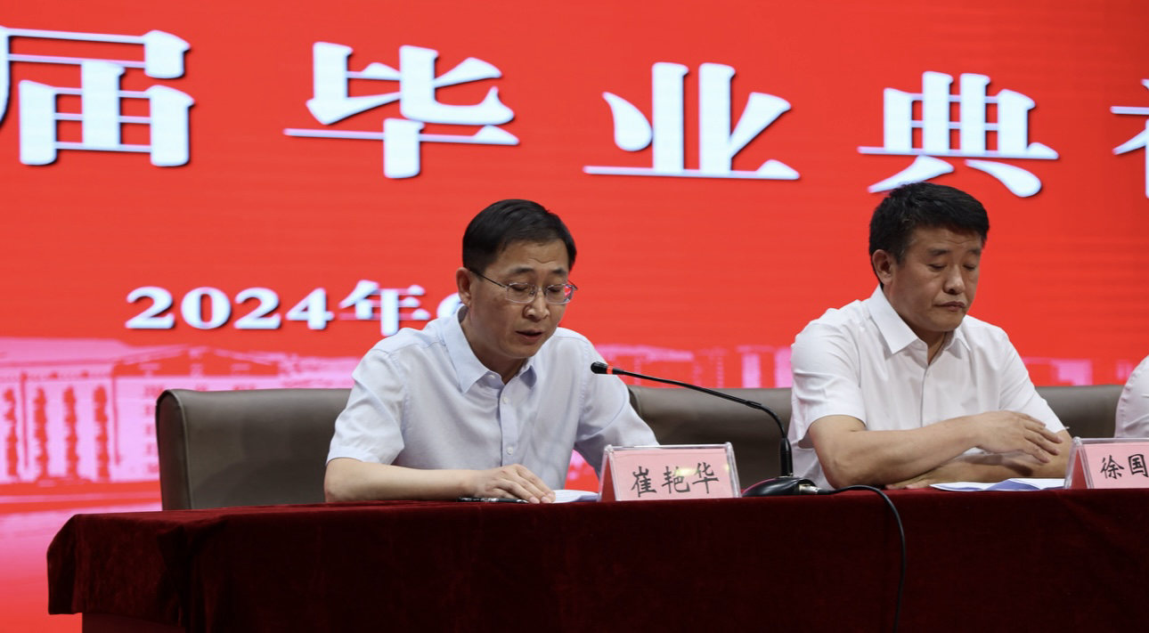 6月24日,学校2024年毕业典礼在三号楼五楼会议厅隆重举行。党委书记苏永民,校长单伟颖,校党委班子成员,学校相关职能部门党政负责同志、教师代表、校友代表以及毕业班辅导员参加活动。副校长崔艳华主持典礼。
