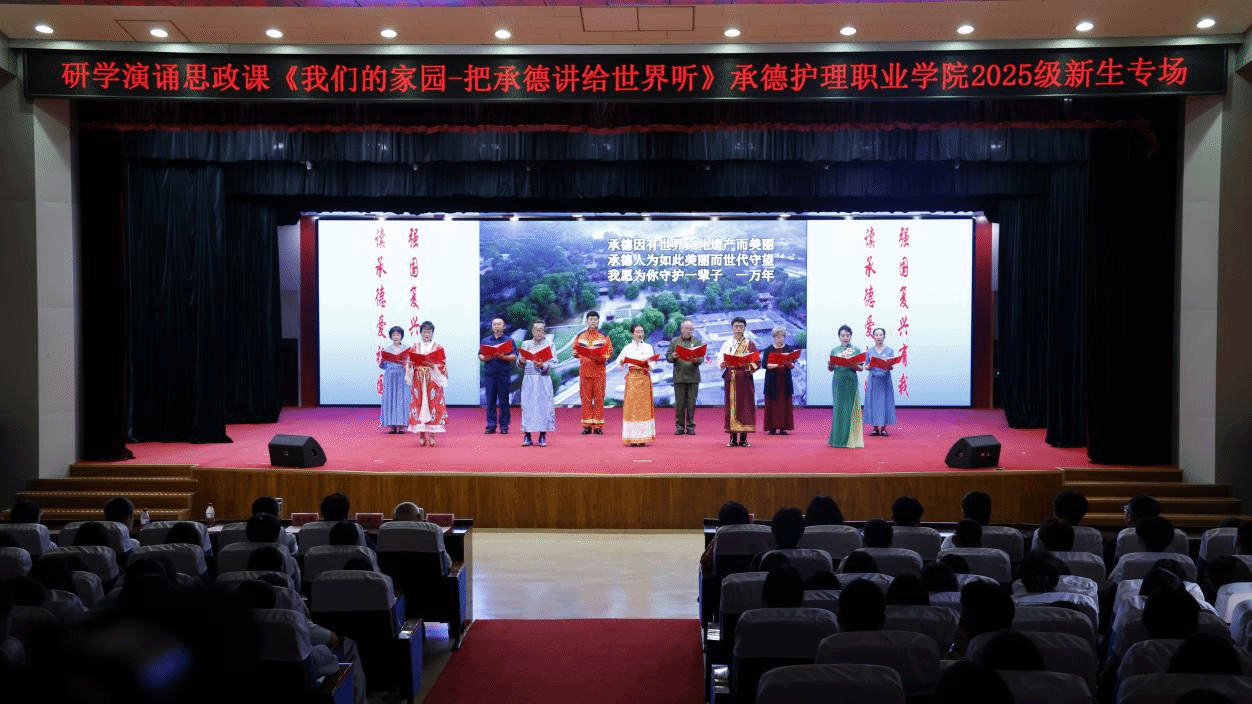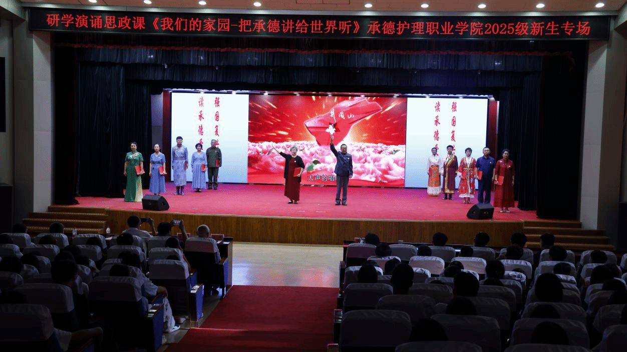 本次研学演诵思政课活动由承德市关心下一代工作委员会组织12名退休老同志志愿奉献。整场演出以情景诵读、影像字幕为主要形式,融入音乐、影视互动等综艺元素,将承德昨天的记忆、今天的奋斗、明天的梦想生动地展现在大家面前,现场气氛热烈,师生备受鼓舞。