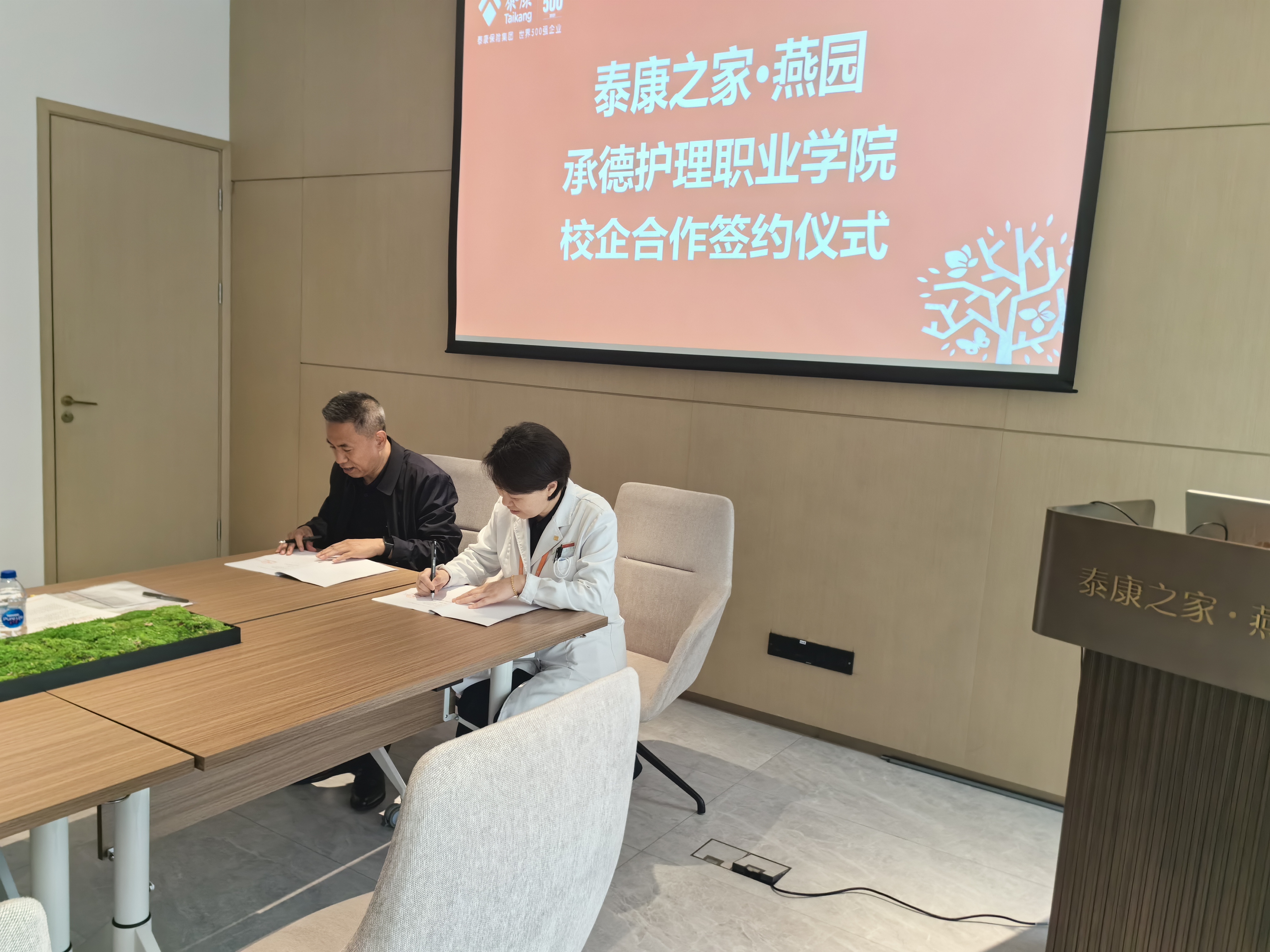在泰康之家燕园,人力资源总监刘春宇带领白兴武一行对燕园进行了实地参观,同时介绍了燕园的功能区划及运行模式。在座谈交流中,燕园社区副总经理张敏表示企业正处于快速的发展期,人才需求旺盛,将优先引入学历层次较高、年轻有朝气的员工,企业发展用人与beat365正版唯一官网必一所开设的专业有较高的匹配度,学校由老牌卫生院校上档升级而来,底蕴浓、专业实力雄厚。企业一直在寻求与学校合作的契机,今日终于得偿所愿。白兴武表示,泰康之家是作为国内高端养老的领军企业,是行业翘楚,无论是经营理念、运营机制、人才培养模式,还是管理水平都值得学习和借鉴,能与泰康之家合作,对beat365的专业建设、内涵建设乃至毕业生的人生事业发展都将带来极大的提升。随后,校企双方签署了“校企合作协议”,设立“beat365正版唯一官网必一泰康之家燕园实习实训基地”,并就下一步成立“泰康班”等合作内容进行了深入交流。