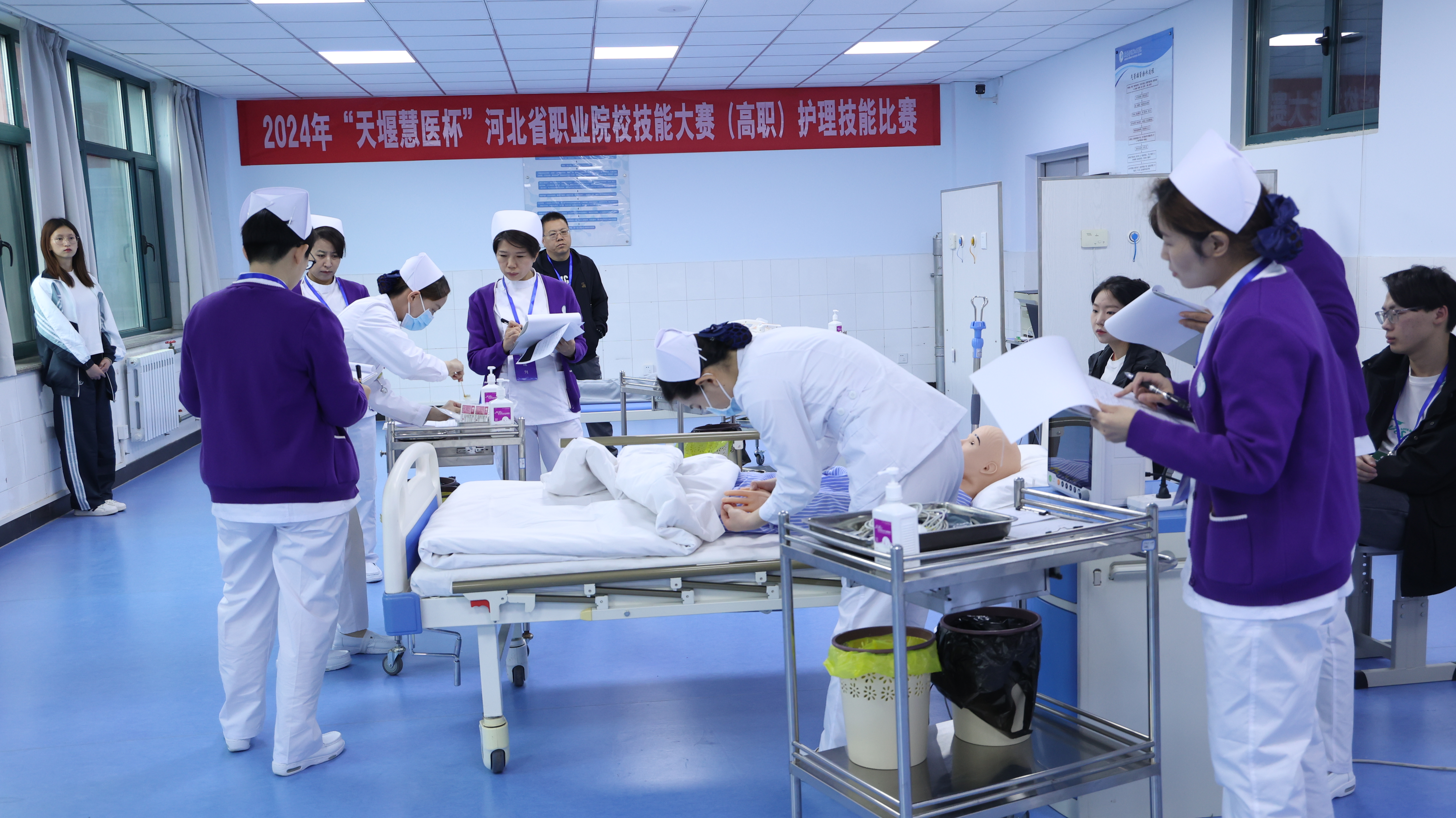 根据全国职业技能竞赛组委会《关于2023年全国职业院校技能大赛高职组护理技能赛项比赛的通知》、河北省教育厅下发的《关于举办2024 年河北省职业院校技能大赛的通知》(冀教职成2024〕8 号)和《河北省职业院校学生技能大赛方案》(冀教职成〔2022〕72 号)等文件精神,4月22日至24日,由河北省教育厅主办,河北省卫生职业教育集团、beat365正版唯一官网必一承办,慧医(天津)教育科技有限公司协办的2024年“天堰-慧医杯”河北省职业院校技能大赛(高职)护理技能比赛在学校成功举办,来自河北省内16所高职院校的16个参赛团队参加本次比赛。