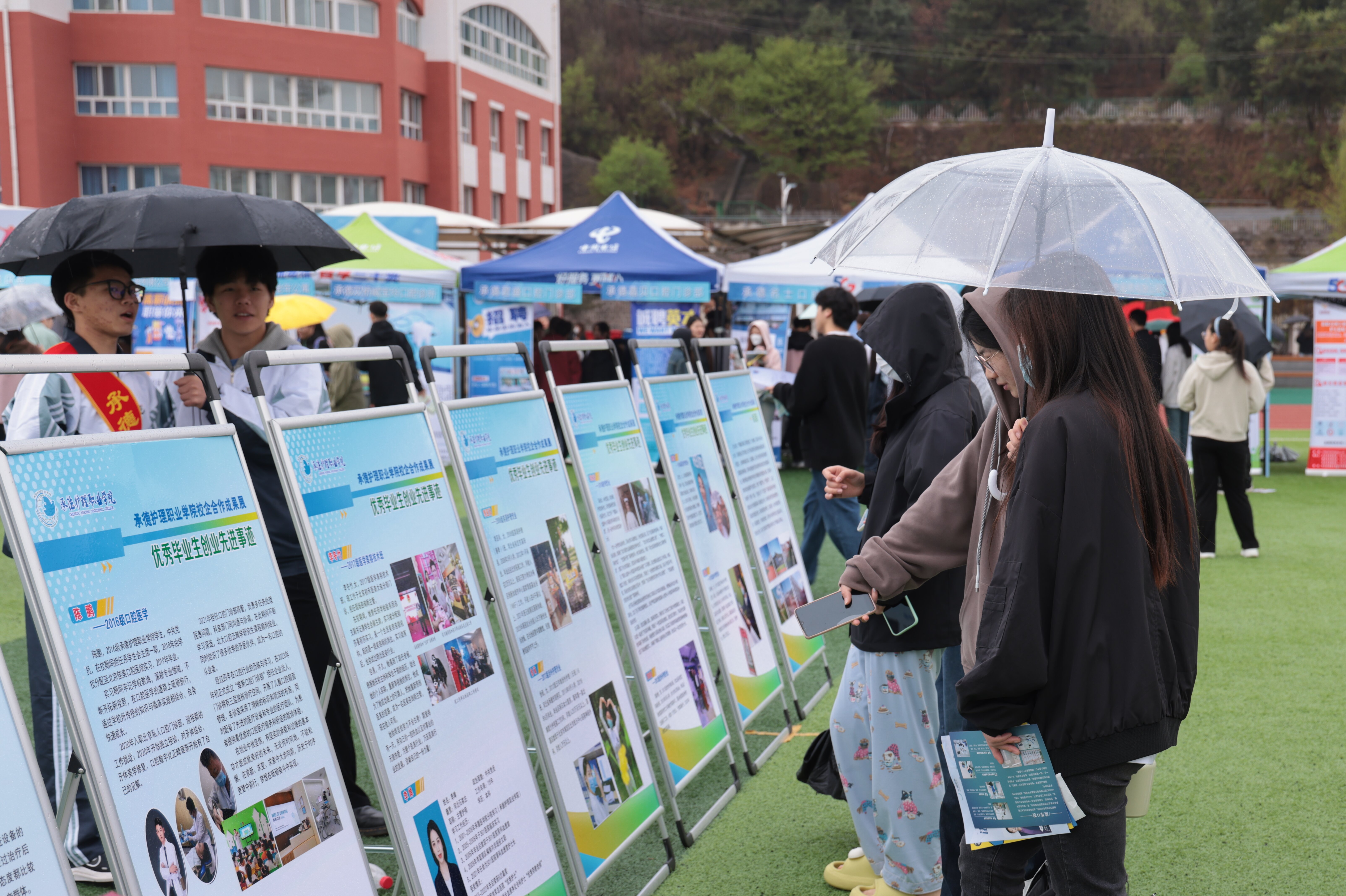 本次招聘会开展现场宣讲会10余场,为毕业生提供1000余个就业岗位。同时,现场设立了承德市双桥区人社局“2024公共就业创业服务进校园”咨询处、学校武装部征兵工作宣讲站、就业指导服务处、实习洽谈对接处、各系咨询服务台等展位,为毕业生提供就业指导服务。