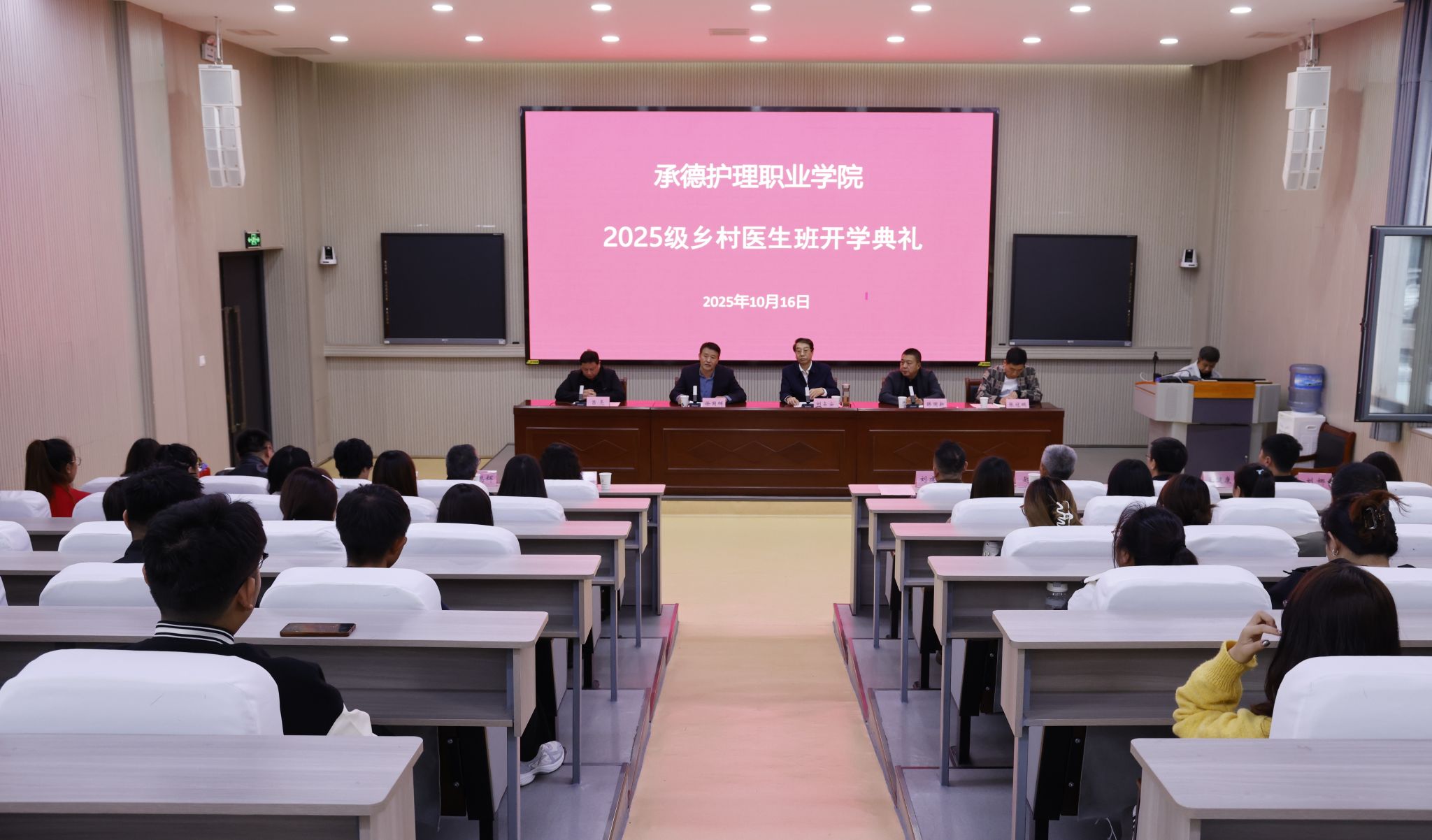 10月16日,学院2025级乡村医生班开学典礼在一号教学楼技能演播厅举行。承德市卫生健康委员会二级调研员刘占安、学院副院长徐国辉出席并讲话。学生工作部、医学系等相关部门单位负责同志、新生班主任及全体新生参加活动。