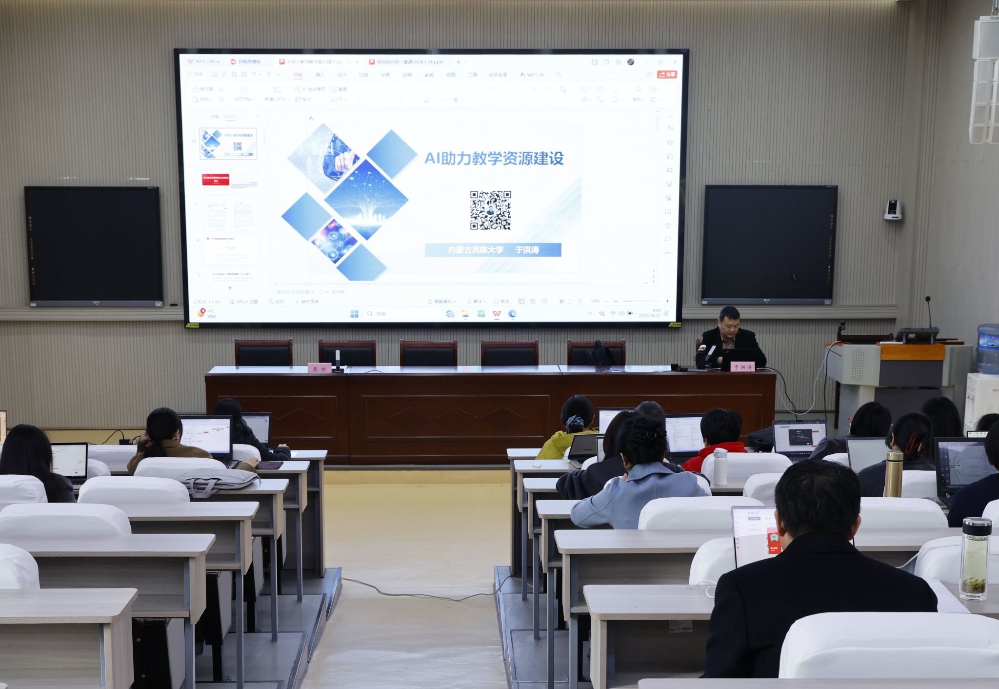 本次培训特邀内蒙古民族大学于洪涛教授作为主讲专家,围绕智慧课程建设、知识图谱与能力图谱、AI助教与课程专属智能体,AI实践、任务引擎等七个方面,通过理论拆解、案例剖析、实操演练进行讲解,帮助教师有效掌握AI赋能教学的知识与技术。