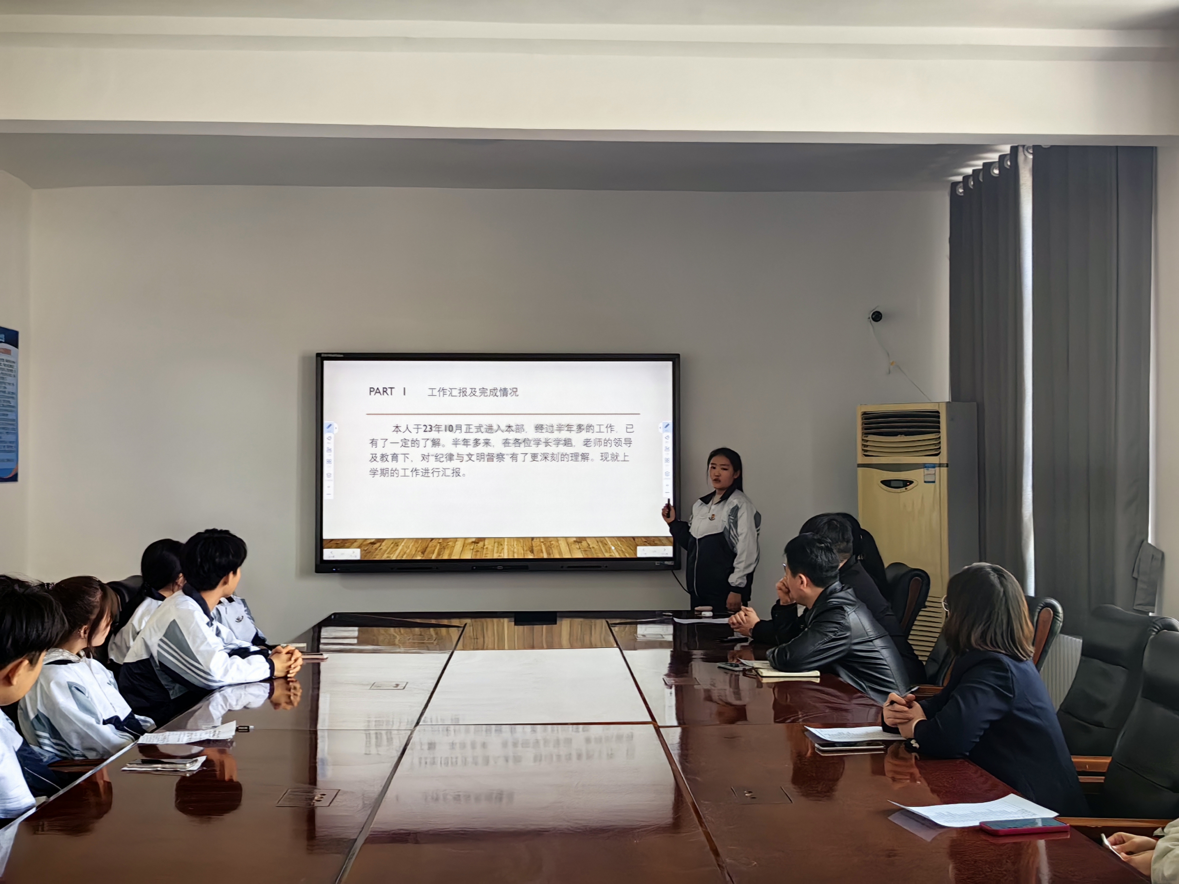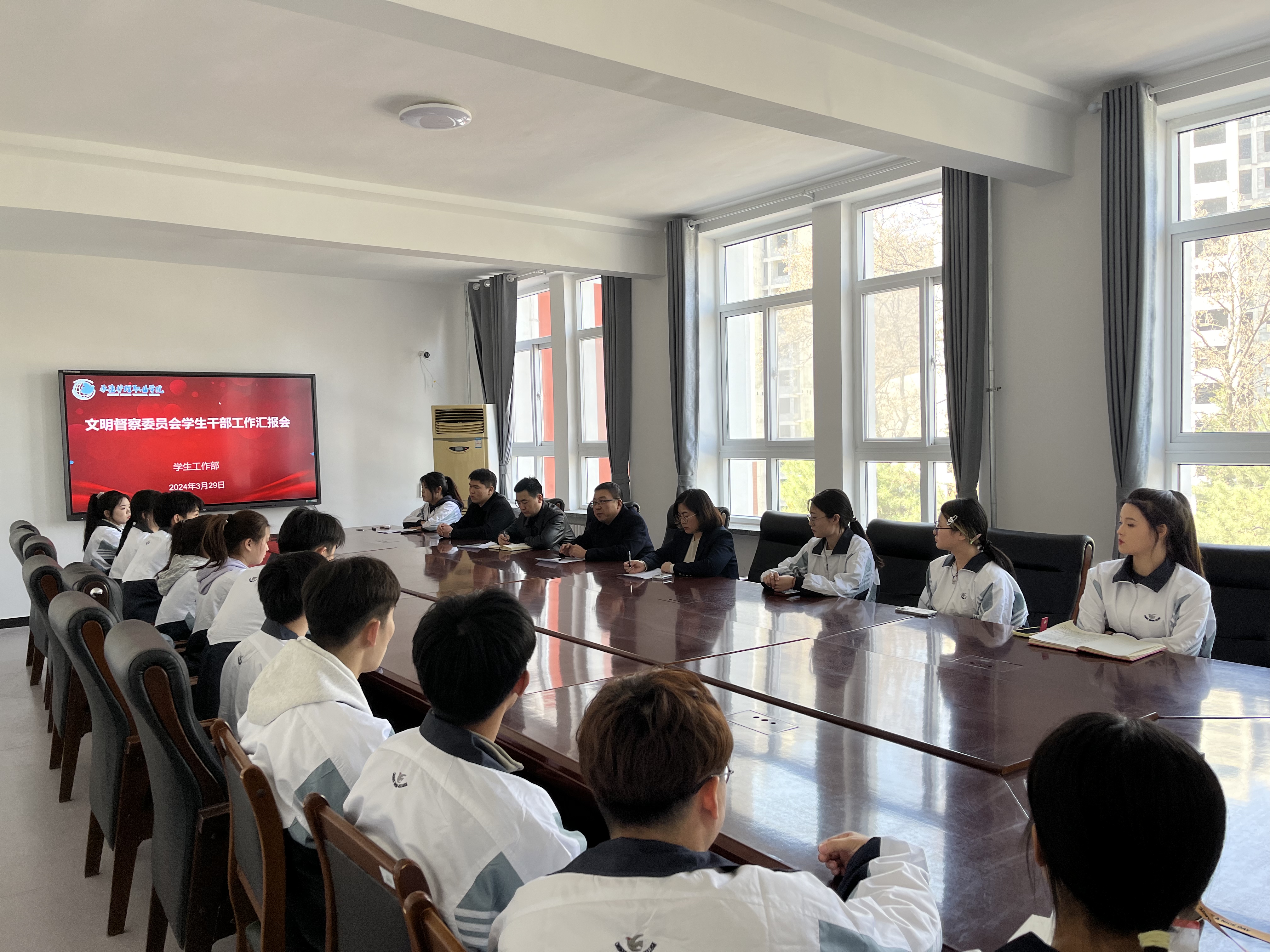 为进一步推动文明督察委员会建设,加强工作评价与总结反馈,促进文明督察委员会健康发展,提升服务学生的能力,共同塑造清新阳光的组织形象。3月29日,第五届文明督察委员会学生干部述职评议会在五号教学楼会议室举行,学生工作部负责人及主管教师、校第五届文明督察委员会全体学生干部参加。
