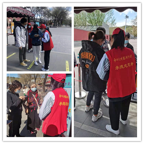 在活动开展的5天里,志愿者们积极配合景区的工作人员维持游客入园秩序,为游客提供“行程卡”扫码查询、线上购票、答疑咨询等服务。同时,志愿者们还帮助游客提拿物品、照看儿童和搀扶老人等。特别是志愿者协会会长伍志邦同学,全程搀扶假肢手术后患者,并为其提供健康知识咨询,得到了景区工作人员和游客的表扬和赞誉。志愿者们成为承德“五一”小长假”旅游工作中一道亮丽的风景线,展示了当代大学生的精神风貌和文化素养。