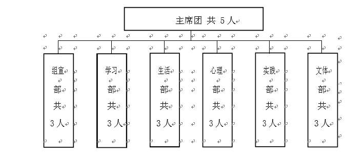 第十六条 学生会干部职数。院学生会设主席团,主席团5人,执行主席1人;工作部门负责人2至3人,学习部、生活部、文体部、实践部、心理部、组宣部各设部长1名,副部长2名。