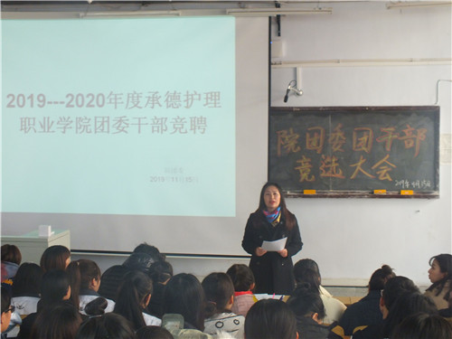 2019年11月15日中午,院团委在1号教学楼三楼阶梯教室举行2019-2020团委会副部级干部竞聘大会。学院团委书记陈荟洁、团委干事王成、思政部李昀珊、团委各部门部长、团员代表90余人担任此次大会的竞聘评委。58名候选人参加了竞选。