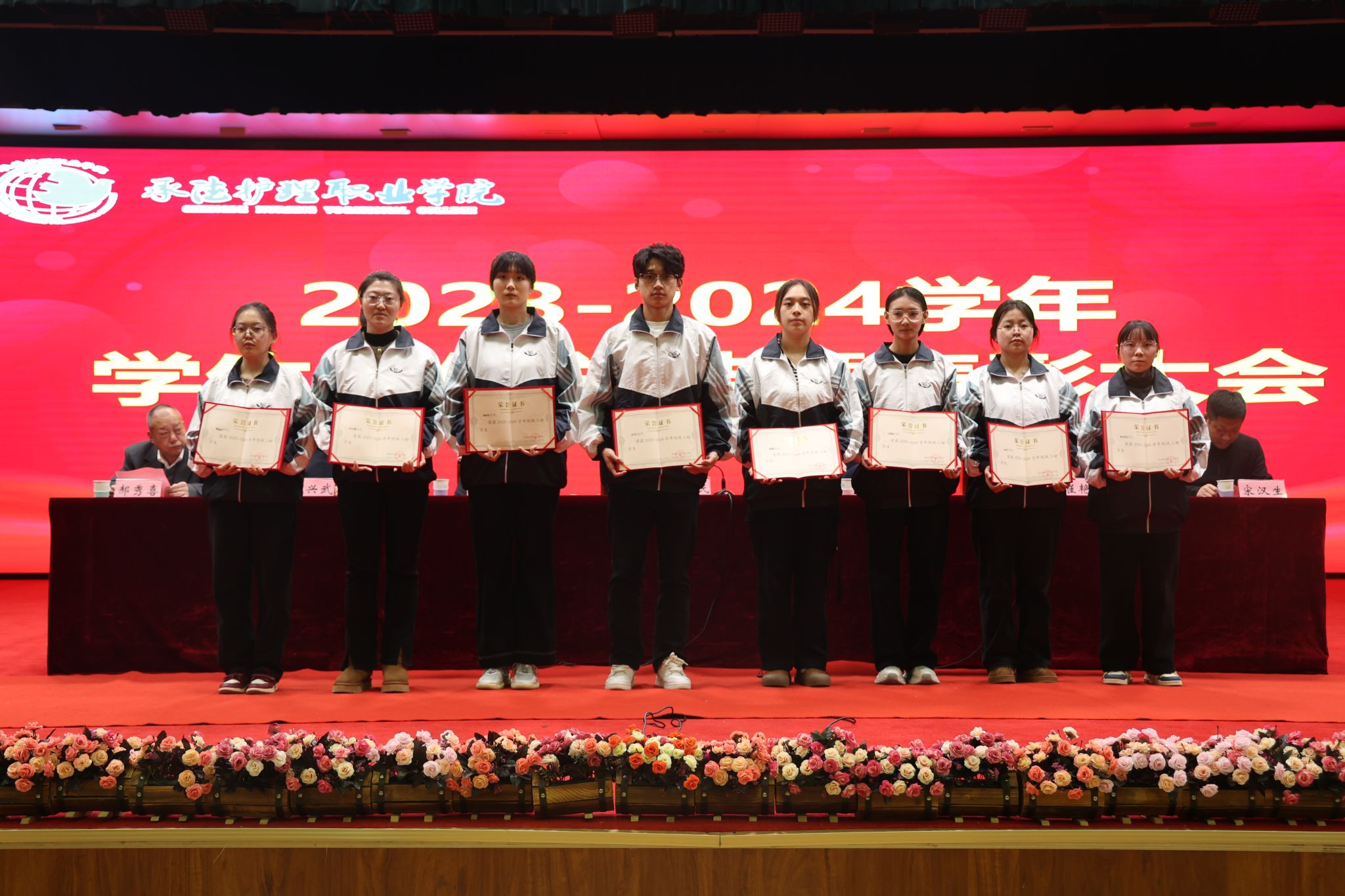 会上,学生工作部部长韩国新做了《2024年学生工作报告》,赵树才宣读了《beat365正版唯一官网必一关于表彰2023-2024学年学生工作先进个人和集体的决定》。本次大会对石聪聪等512名三好学生,邢杰等374名优秀学生干部,2023级临床医学1班等32个先进班集体,2023级口腔医学1班等10个集体单项进步奖,田志红等5名优秀辅导员(班主任),肖橙等11名国防教育和征兵工作先进个人,顾英国等9名就业工作先进个人,高乐等18名“国家奖学金”获得者,李鑫等193名“国家励志奖学金”获得者,魏梦媛等68名一等奖学金获得者,王一博等392名二等奖学金获得者,叶迎雪等288名三等奖学金获得者,刘明娜等40名文明标兵奖学金获得者,王一畅等92名学业进步奖学金获得者,郭文昕等86名社会实践优秀奖学金获得者,王一帆等40名文体活动优秀奖学金获得者,何嘉希等10名“颈复康药业英才奖学金”获得者予以表彰奖励。