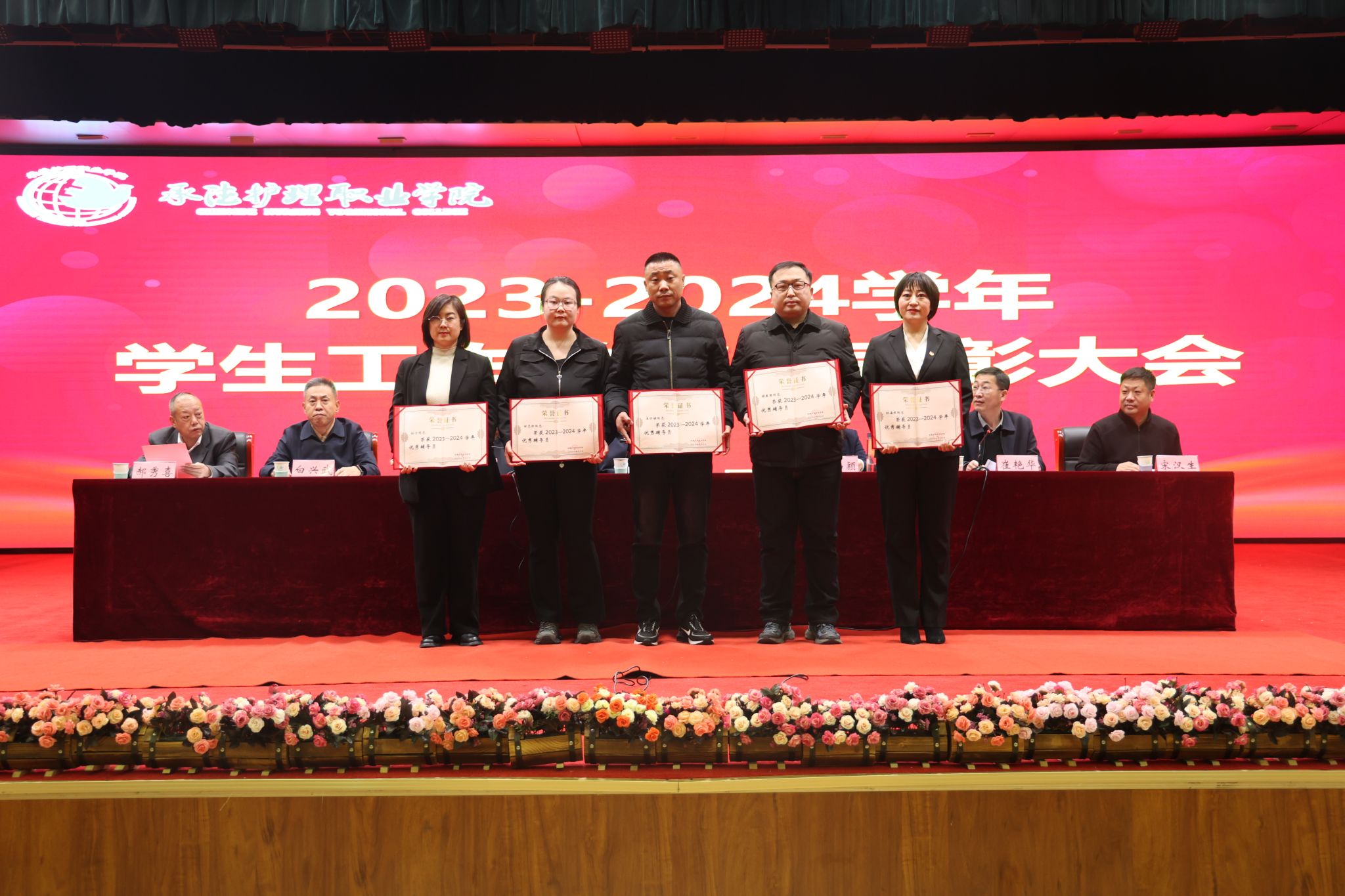 12月19日,beat3652023-2024学年学生系统表彰大会在五楼会议厅召开。会议由副校长崔艳华主持,校党委书记苏永民、校长单伟颖、党委副书记赵树才、党委委员、纪委书记宋汉生、党委委员、副校长白兴武、党委委员、正处级组织员郝秀喜,企业代表、学生工作部和系部相关领导及学管工作人员、全体辅导员、班主任及学生代表400余人参加了会议。