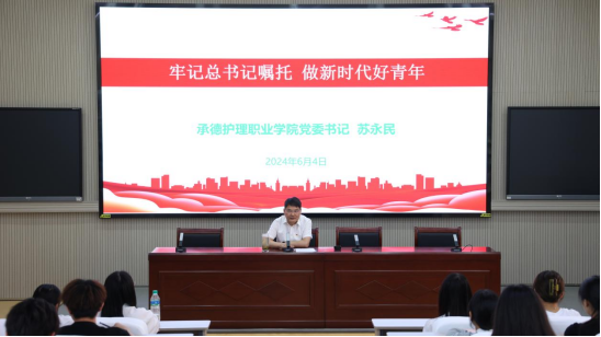 6月4日上午,校党委书记苏永民以《牢记总书记嘱托 做新时代好青年》为题,在一号教学楼一楼学术报告厅为青年学生讲授了一堂生动精彩的思政课。