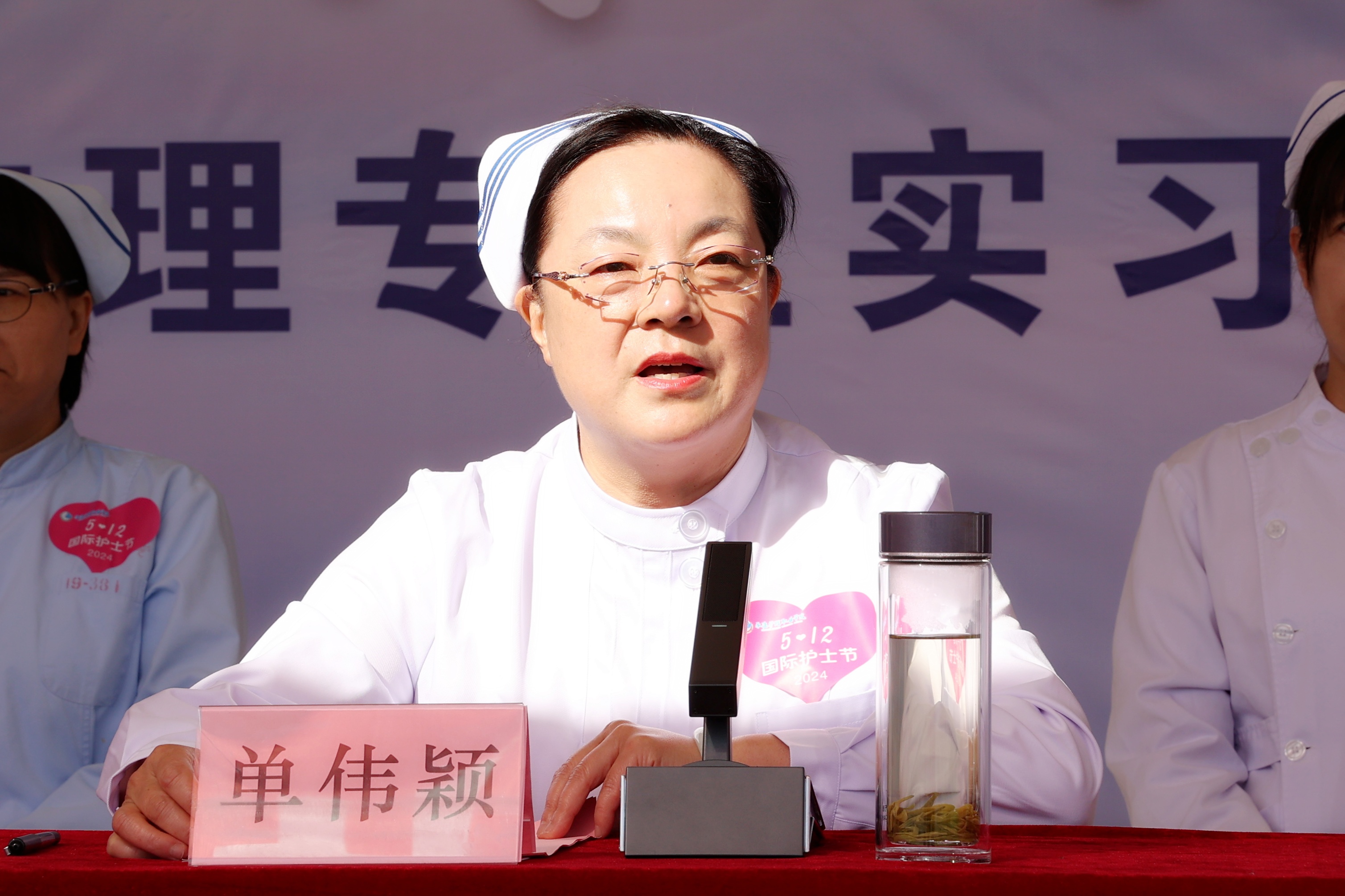 校长单伟颖代表学校党委领导班子致辞,向护理工作者和为护理事业作出贡献的前辈们致以节日的祝贺和亲切的问候,向长期辛勤耕耘在教学科研一线的护理教师致以节日的问候和崇高的敬意,向护理专业的同学们寄予深切的期望和节日的祝贺,勉励学生要认真学习、虚心求教,掌握扎实的医学基础知识、娴熟的护理技术和与患者沟通交流的艺术,努力成为新时代合格的护理人才。希望学生牢记南丁格尔“终生纯洁,忠贞职守”的誓言,明确“健康所系,性命相托”的神圣职责,发扬敬佑生命、救死扶伤、甘于奉献、大爱无疆的职业精神和护理事业的光荣传统,在未来的护理岗位上忠实履行护士职责,展示新的风貌,创造新的业绩。