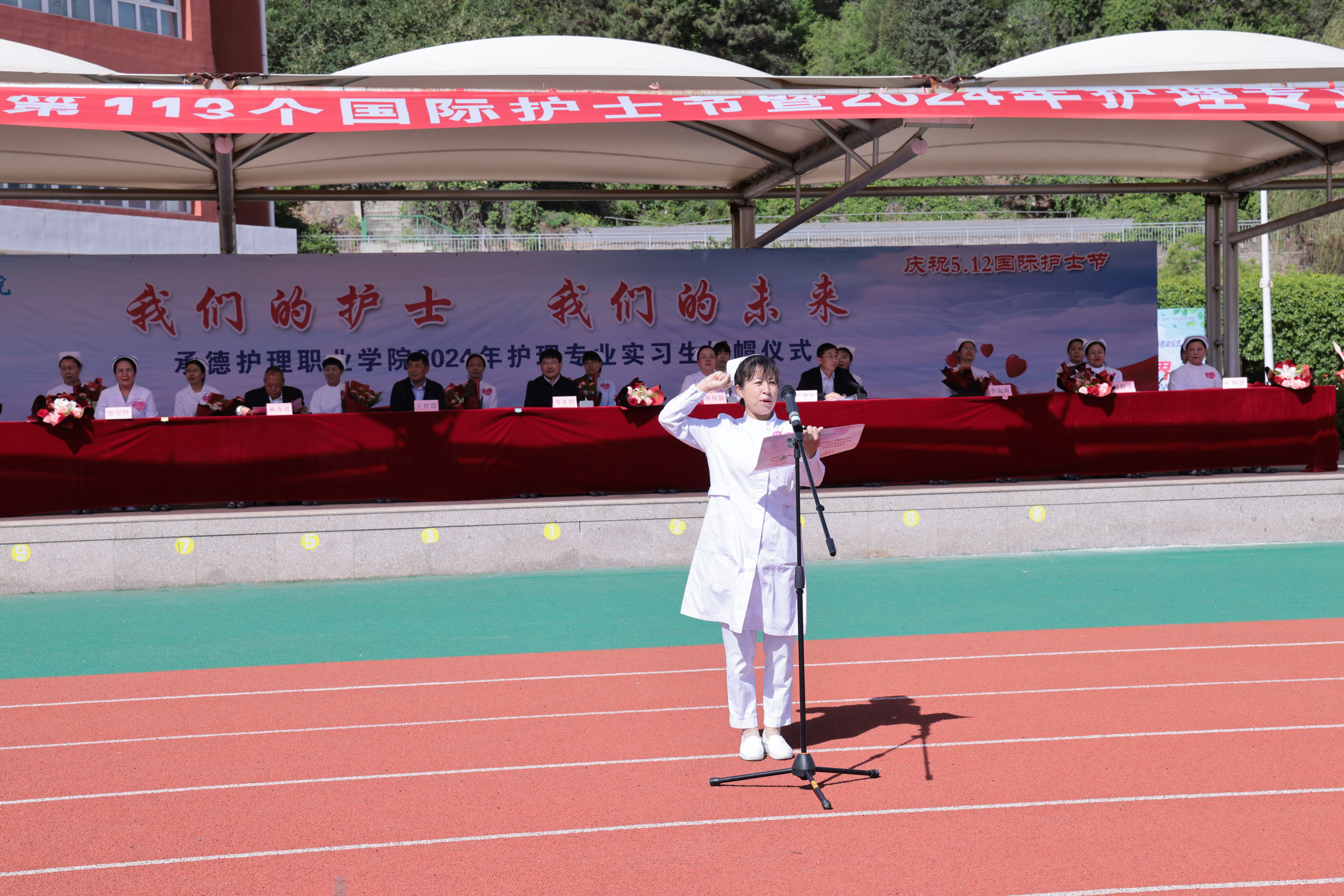 承德医学院附属医院护理部主任李淑英带领学生们庄严宣誓。