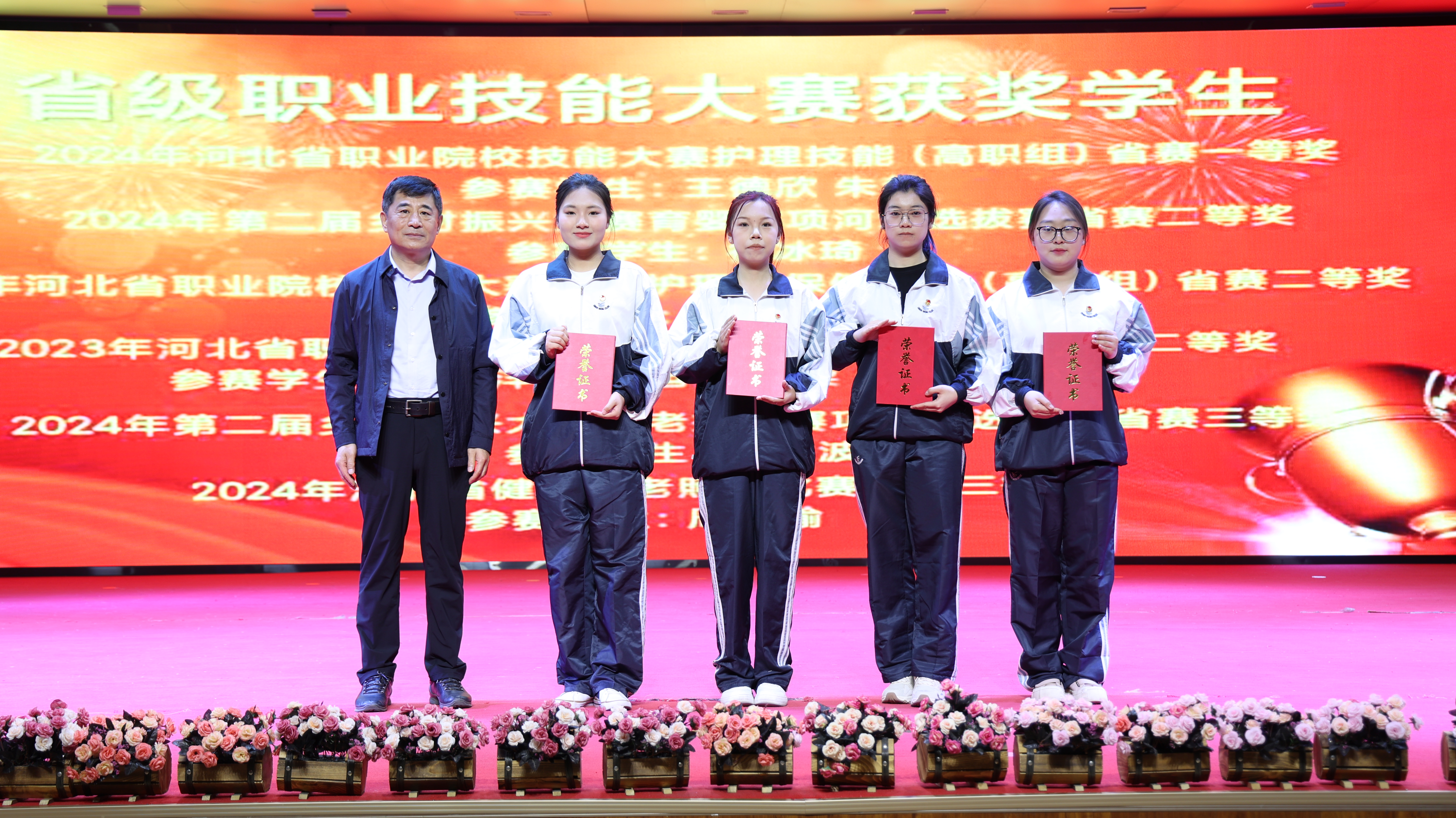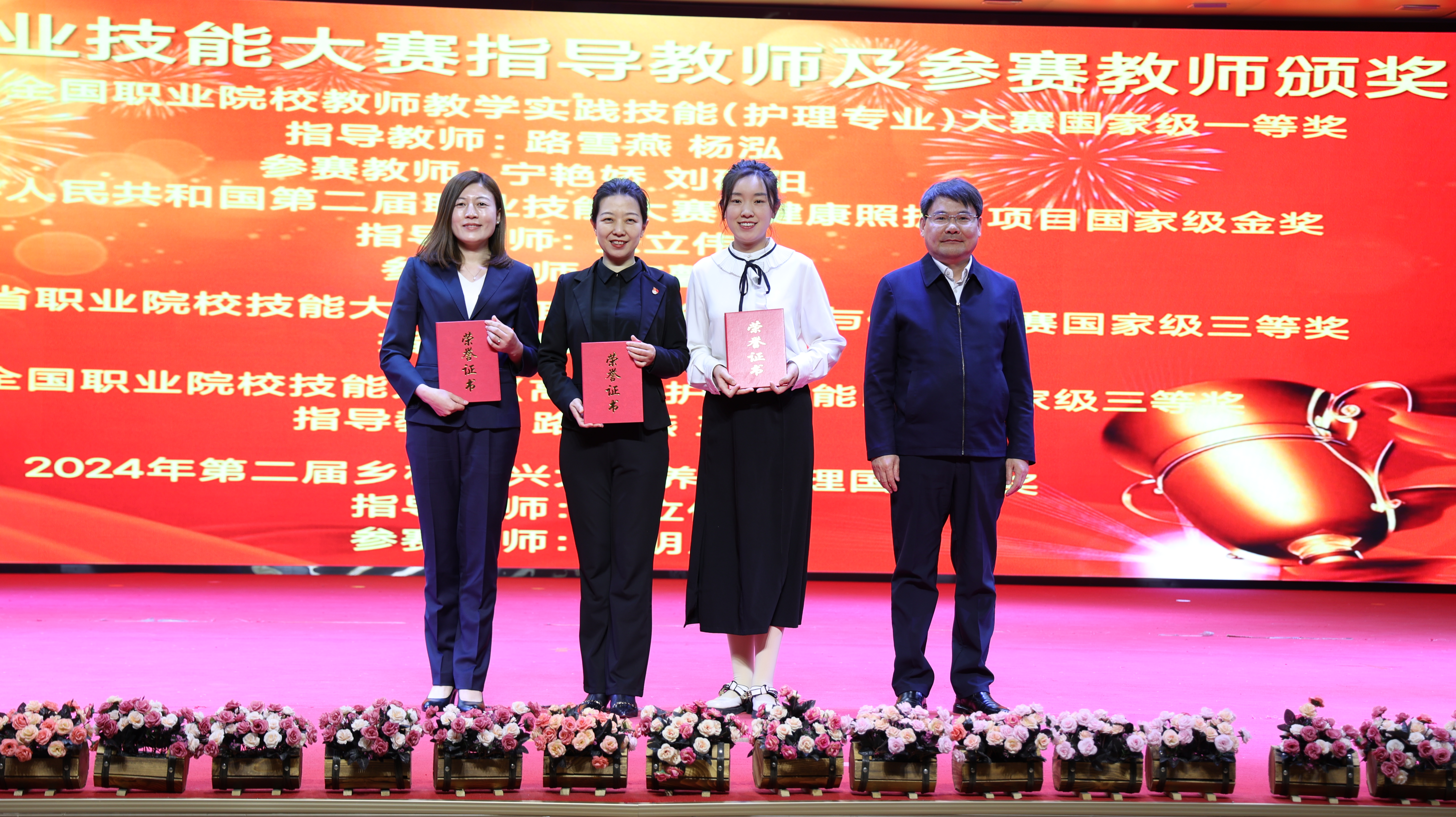 会上,对过去一年来代表学校参加的国家级、省市级护理技能大赛、养老护理技能大赛、老年护理与保健技能大赛、健康照护技能大赛、健康养老照护技能大赛以及教学能力大赛中取得优秀成绩的学生以及老师进行了表彰。