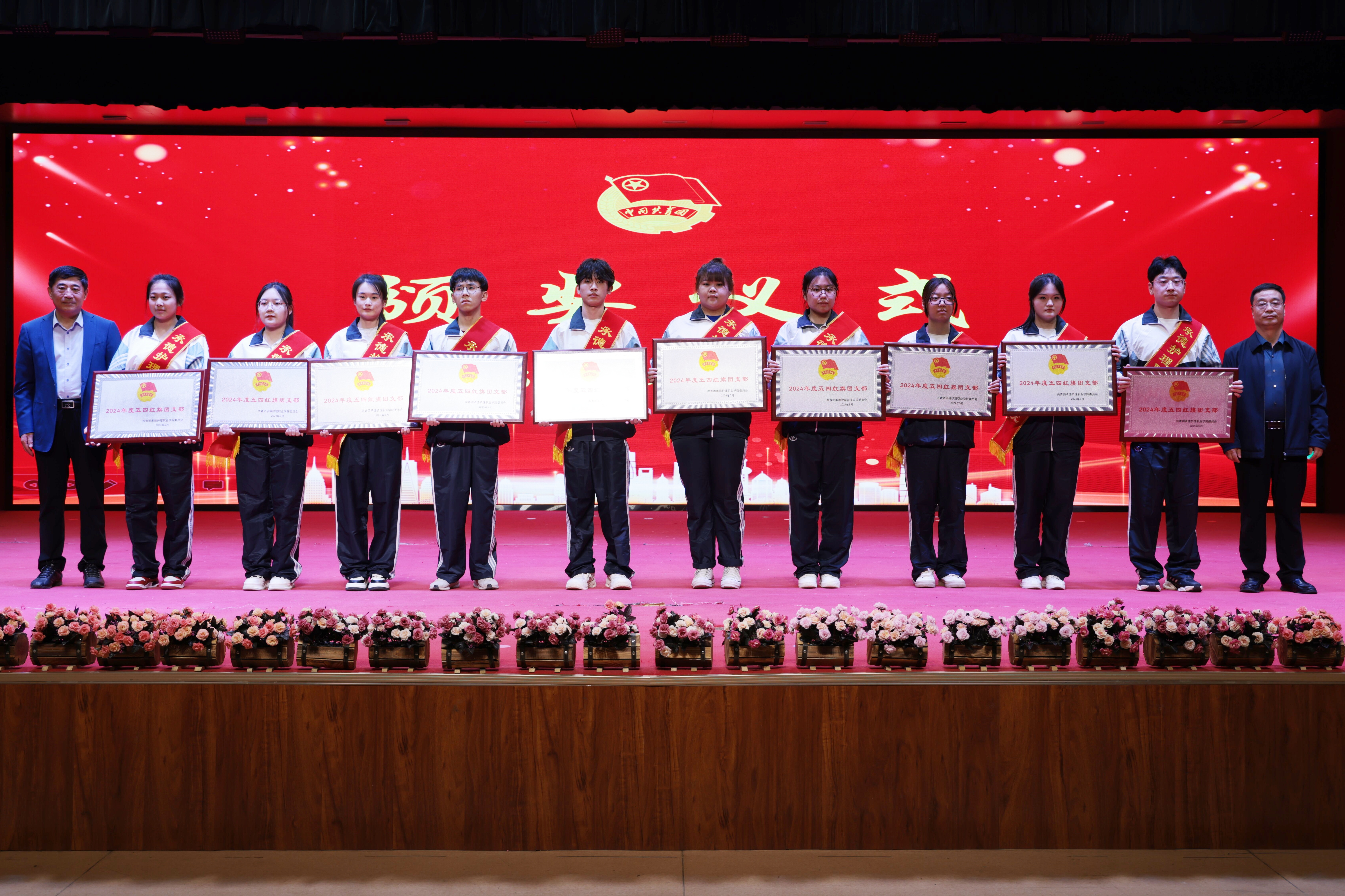 为充分发挥示范引领作用,激励学校各级团组织和广大团员、团干部向先进学习、向优秀看齐,与会领导为荣获“优秀团员”“优秀团干部”“优秀志愿者”“优秀社团”“优秀团支部”“优秀团总支” “优秀团指导教师”等荣誉称号的先进个人和团体颁奖。