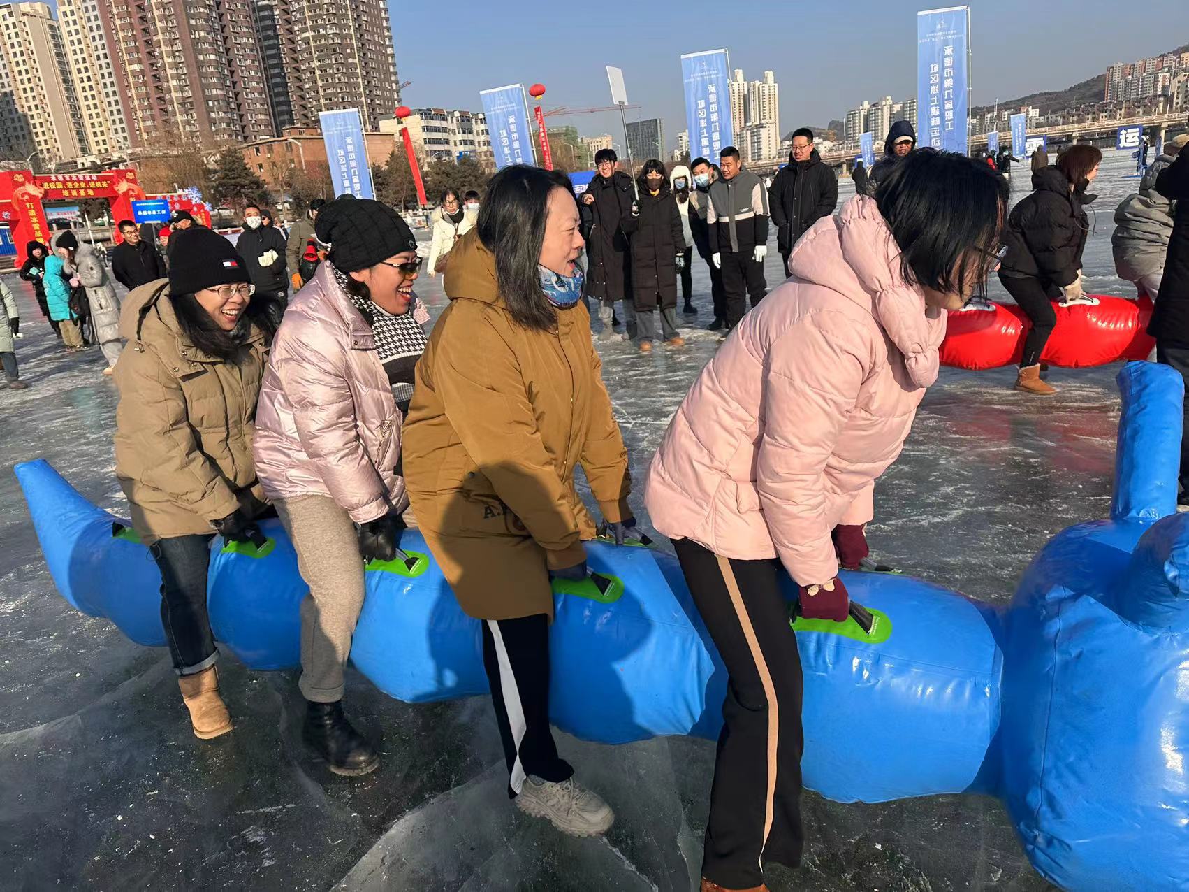 为深入贯彻党的二十大精神,进一步落实承德市冰雪运动进校园等实施方案,2月2日,学校工会积极组织教职工参加由承德市体育局、市直机关工委、总工会举办的2024年承德市第九届职工、社区冰上趣味运动会。教职工报名积极踊跃,最终选派了33名教职工参加混合滑冰车、冰上企鹅漫步、冰上板鞋竞速、冰上疯狂毛毛虫、冰上飞盘、雪上拔河六项竞赛项目。最终,在全市14个参赛单位中脱颖而出取得了团体第二名的优异成绩,荣获了4个项目的单项第一和“体育道德风尚奖”。