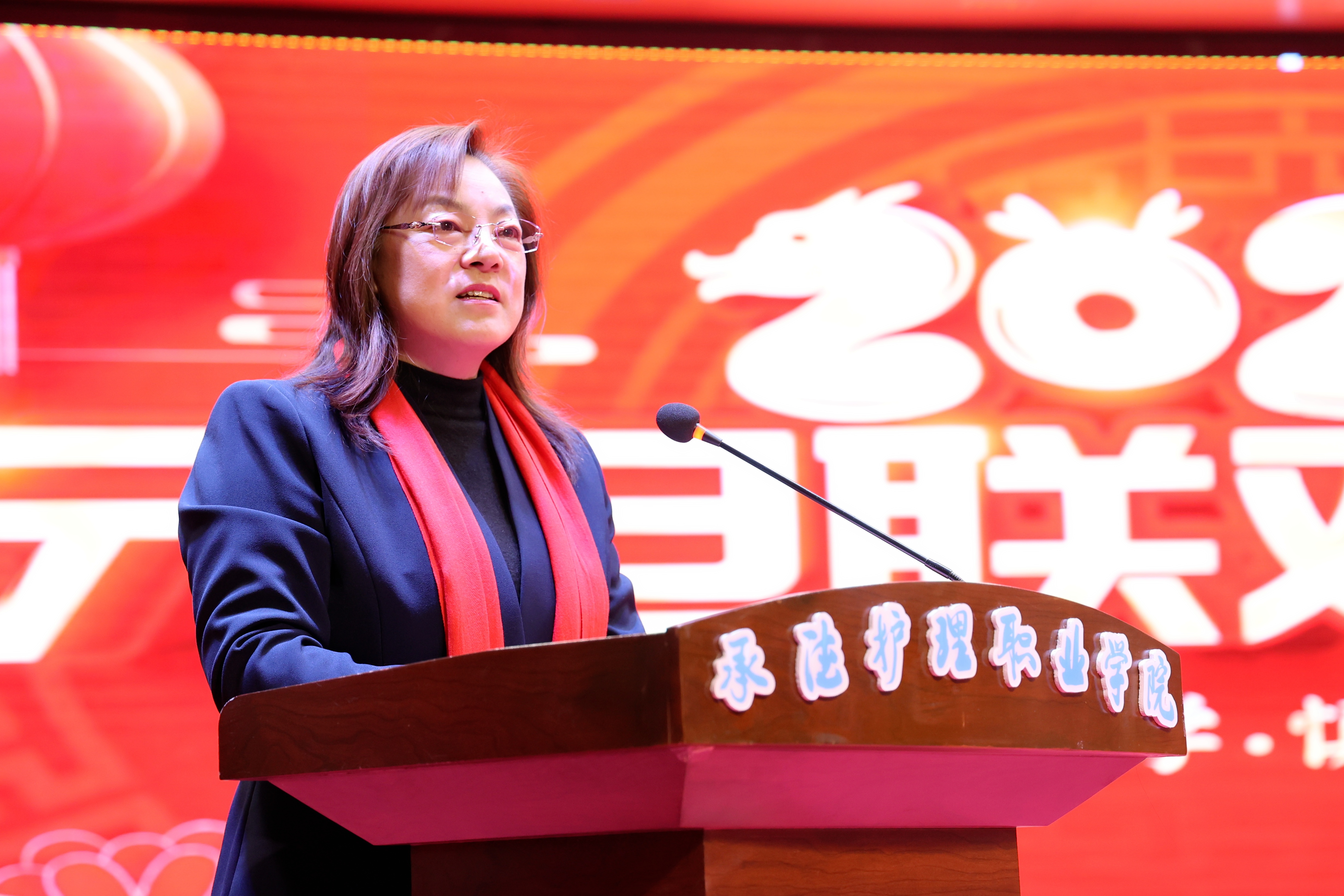 单伟颖为晚会致辞,她代表校党委向全校师生、长期以来关心beat365发展的广大校友和社会各界朋友表示衷心感谢,向他们送上诚挚的节日祝福。她肯定了2023年学校在人才培养、服务社会等方面取得的成绩,希望全体师生在新的一年继续保持昂扬向上的精神状态,持续深入贯彻落实党的二十大精神,坚持习近平新时代中国特色社会主义思想的指引,坚持社会主义办学方向,为培养德智体美劳全面发展的社会主义事业建设者和接班人、医药卫生类高素质技术技能人才作出贡献。