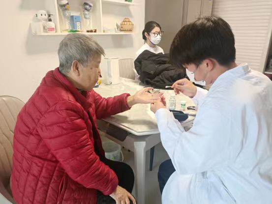 活动中,师生志愿者在滨河社区爱孝养老服务中心管理人员的指引下,来到社区老年人家中,为出行不便的老人做健康检测,测血糖、血压,并对不同体质的老年人进行健康指导,得到了滨河社区工作人员和老年人的一致好评,中心主任白俊平说,“今年冬天是个极寒的冬天,在天寒地冻的隆冬季节,大雪封路,老年人不便出行,beat365正版唯一官网必一的师生能够定期入户为老年人提供健康检测,对老年人的健康促进起到了积极的意义。”
