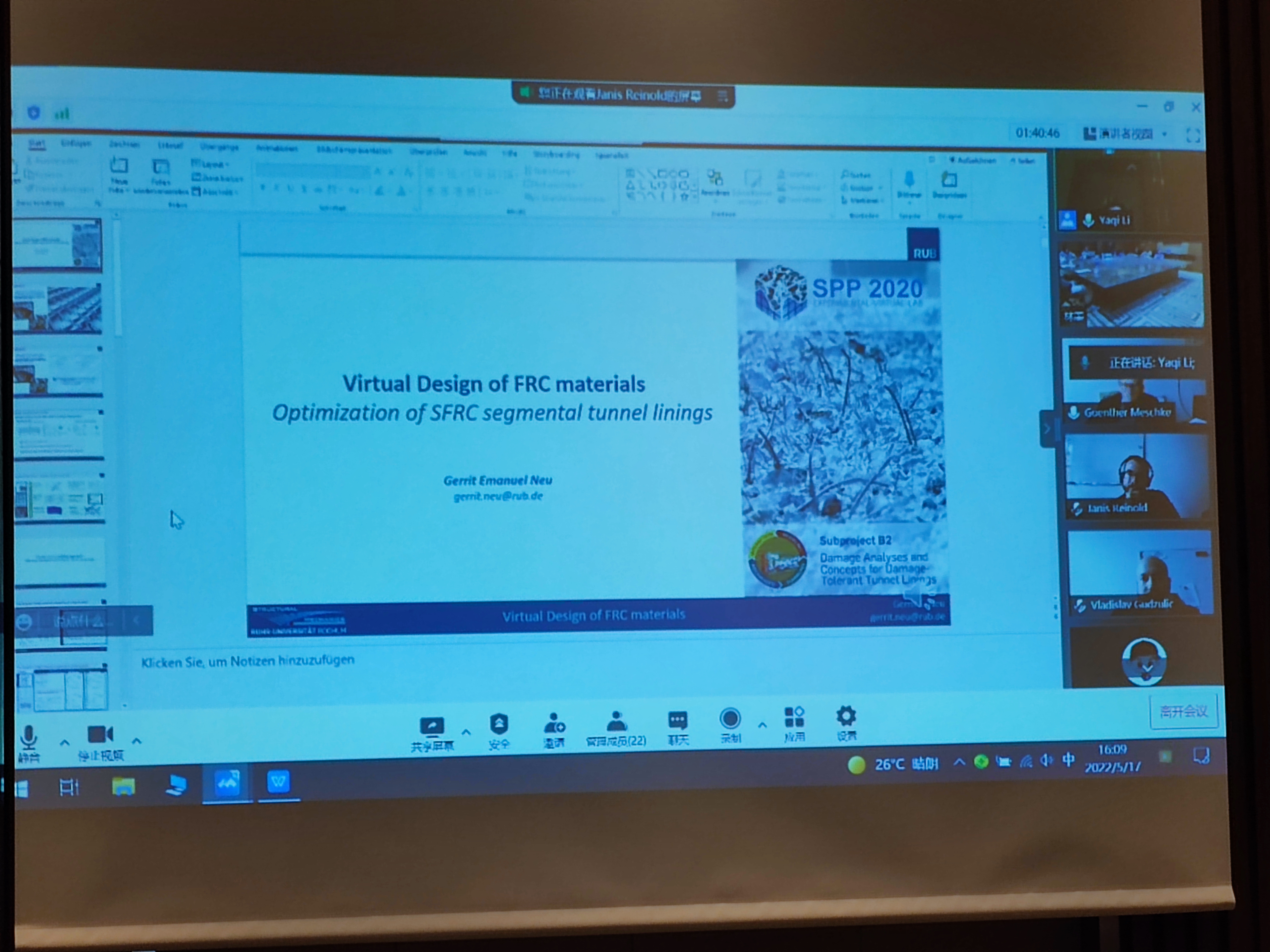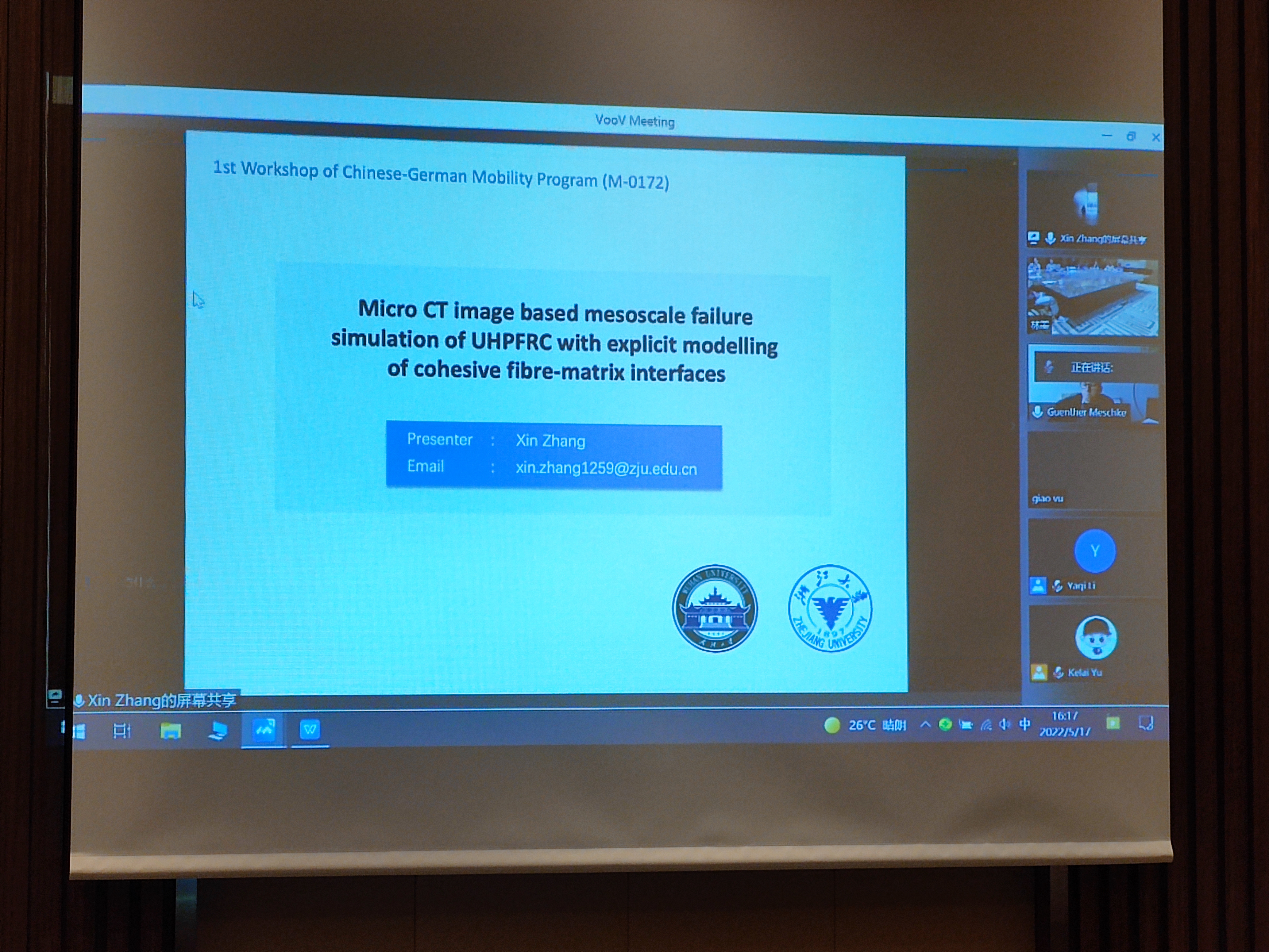 5月17日,由国家基金委中德科学中心资助的中德合作项目(Mobility M-0172:Multiscale tests, simulation, optimization and 3D printing of UHPFRC materials and structures)第一次研讨会以线上线下相结合的形式召开。研讨会由雷竞技raybet登录入口土建学院杨贞军教授和德国波鸿鲁尔大学副校长、欧洲科学院院士Gunther Meschke教授联合主持,邀请6名专家就UHPFRC多尺度试验、断裂损伤模拟和3D打印等做了精彩的学术报告,两校近30名研究人员参加了研讨会并进行了热烈讨论。最后,项目负责人杨贞军教授和Gunther Meschke教授对研讨会进行了总结并对下一阶段的合作交流计划进行了讨论。