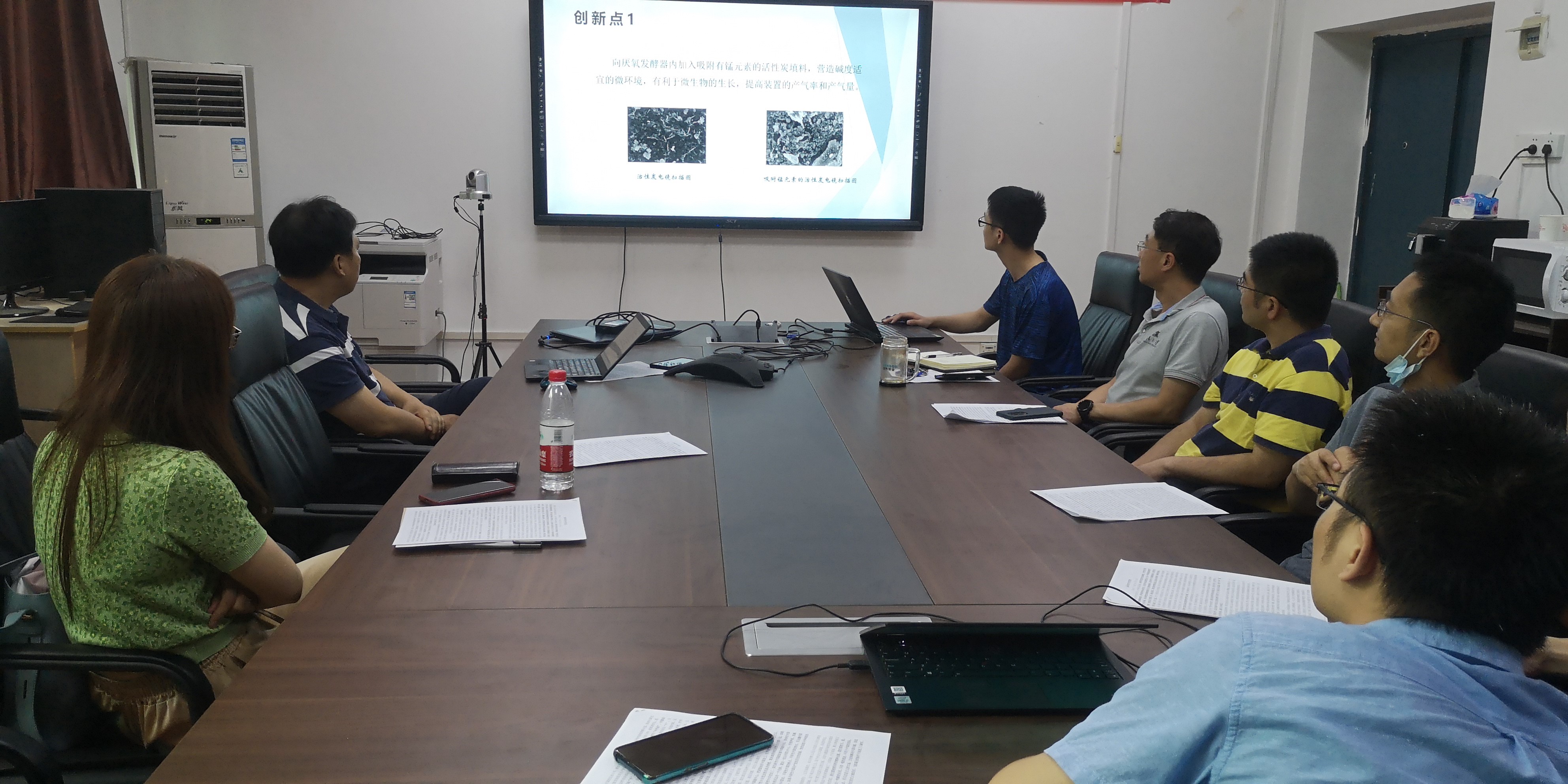 系主任薛英文副教授听完报告后提出建议,可以在装置底部横向深入一根管道定时冲入水流,来解决基质蓄水会造成灰尘淤积可能会导致孔径堵塞问题。