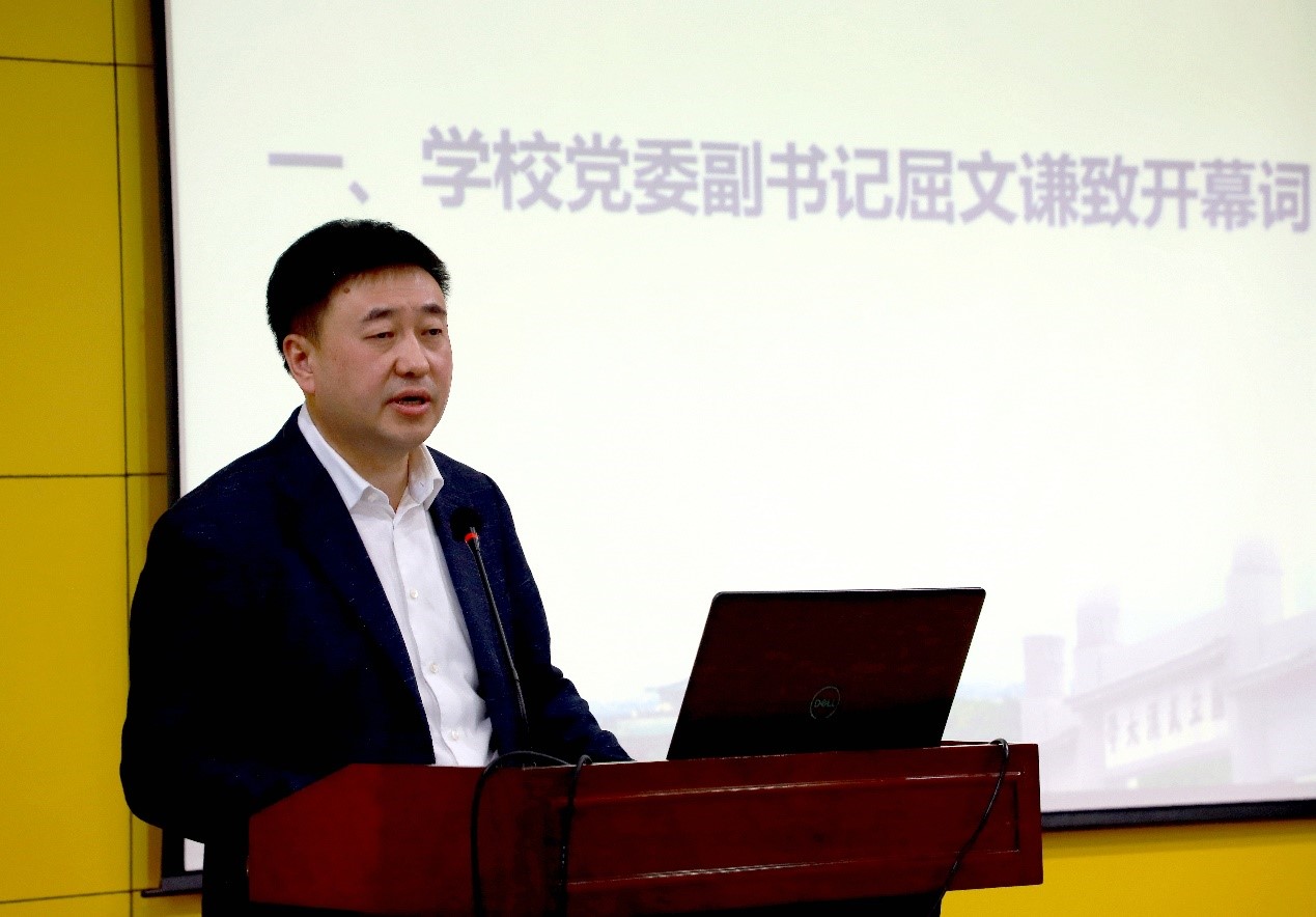 会议伊始,校党委副书记屈文谦致开幕词,他代表学校党委向会议的顺利举办表示祝贺,并对土建学院在研究生培养方面做出的成绩给予了充分肯定。他表示,研究生教育作为国民教育体系的顶端和国家创新体系的重要组成部分,肩负着高层次人才培养和创新创造的重要使命,是国家发展、社会进步的重要基石,是应对全球人才竞争的基础布局。他希望研究生导师能做到以德育德、以心育心,育人为本、德育为先,因材施教、因势而新,与研究生建立亲密、和谐的师生关系,落实好导师作为第一责任人的关键作用。