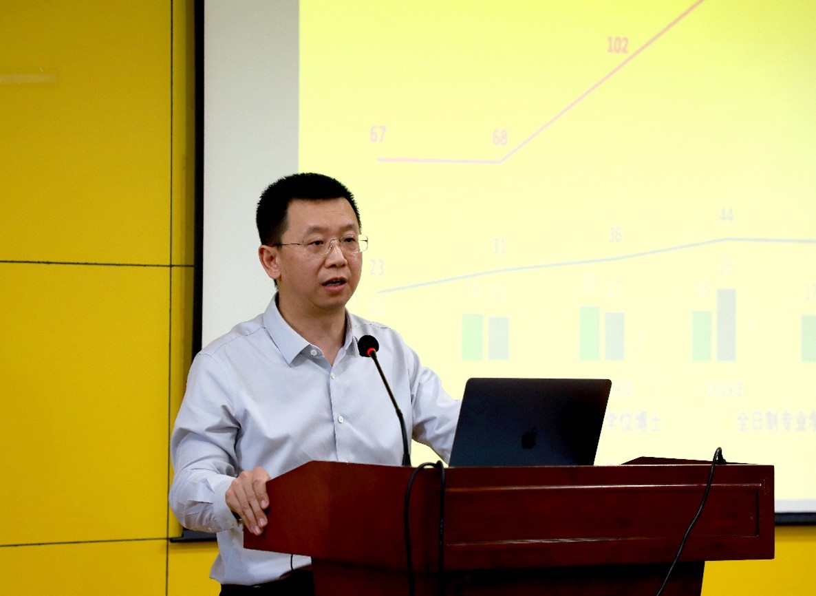 学院副院长胡衡着眼于学院实际情况,作了题为《学院研究生培养情况及近期工作推进》的专题报告。胡院长详细介绍了当前学院科研究生人才培养的基本情况。特别是指出了raybet官网研究生教育培养过程中存在的不足,包括过程管理重视不足,学位论文质量有待提高,培养方案亟需修订等。并针对问题提出了整改的具体措施,相信我们的研究生培养工作会上新一个台阶。