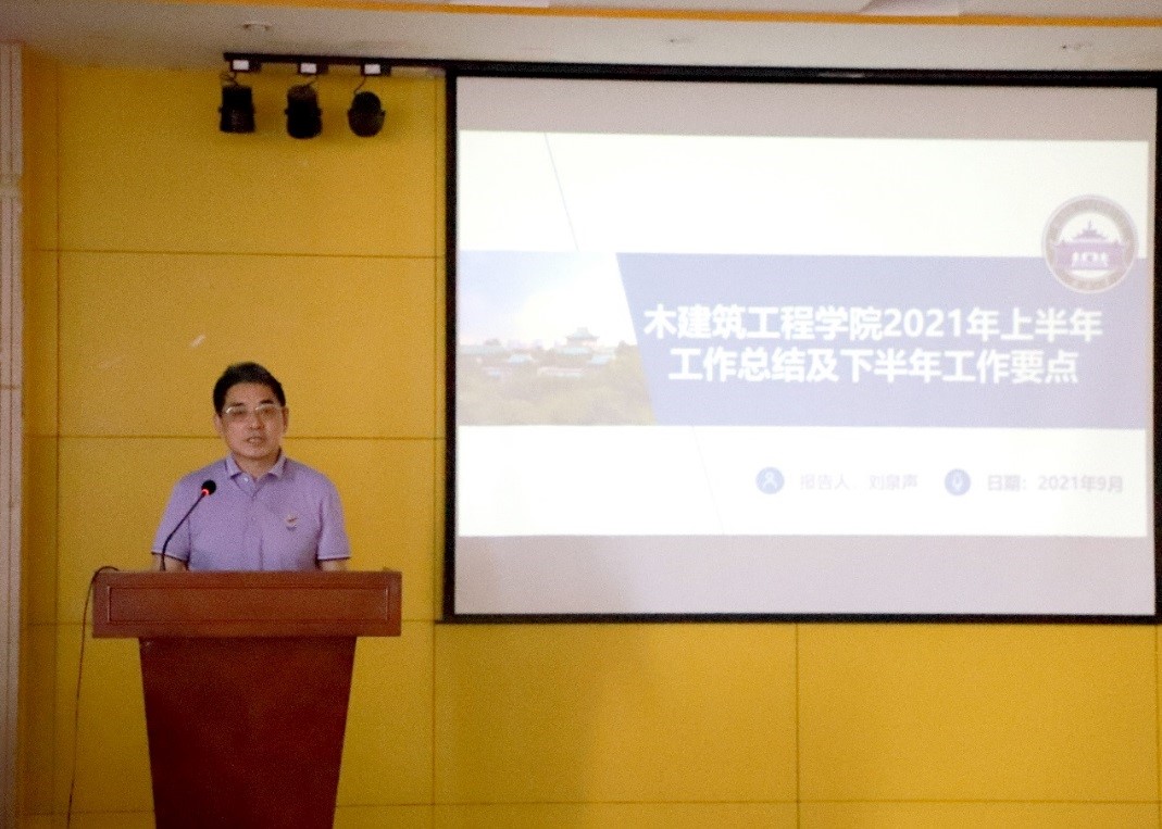 院长刘泉声传达了学校相关会议精神,并向大会作“学院2021年上半年工作总结及下半年工作要点报告”。刘院长围绕教师队伍建设、拔尖创新人才培养、科学研究与社会服务、管理服务与支撑保障和党建思政工作五个方面回顾了学院2021年上半年的工作。从“师资队伍”、“人才培养”、“学科建设”、“科学研究”、“管理服务”和“党建思政”等六个方面介绍了2021年下半年的工作重点。他希望全体教职工凝心聚力、担当作为,争取2021年全年各项工作取得好成绩!