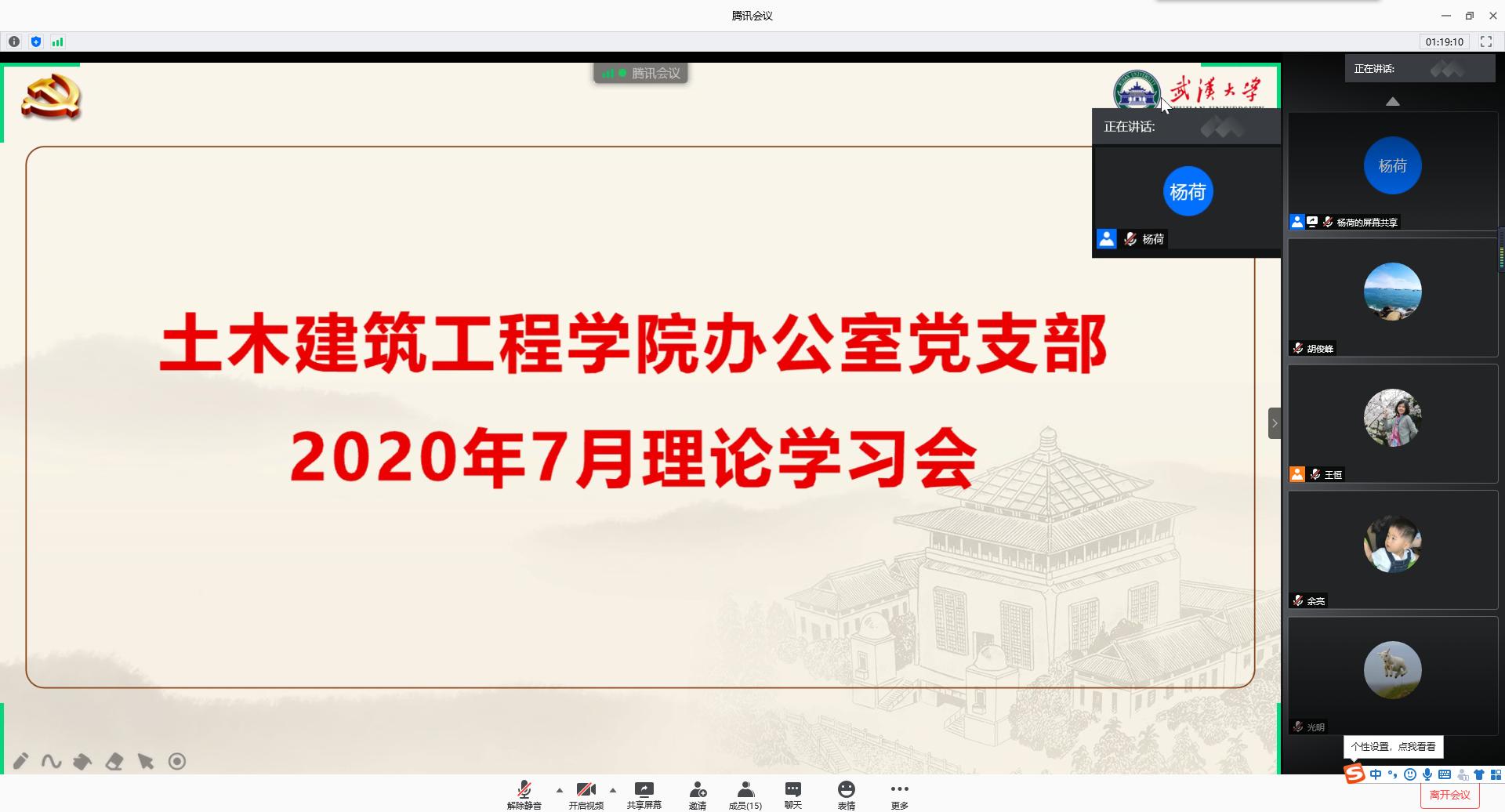 2020年7月10日下午,学院办公室党支部通过腾讯会议平台,开展了一次线上政治理论学习。