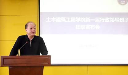 院长刘泉声作为新上任行政领导班子代表在会上发言。他代表行政班子成员向学校领导、全院师生员工的信任表示衷心感谢。他指出,学院党政班子齐心协力、担当作为,师生员工凝心聚力、奋力拼搏,学院的教育事业取得了可喜的成绩。他强调,学院正处于快速发展的黄金时期,新一届行政领导班子将常学常新、提高站位,团结协作、履职尽责,关心师生、破解难题,风清气正、廉洁奉公,团结全院师生继续以奋斗的姿态砥砺前行、再续新篇。