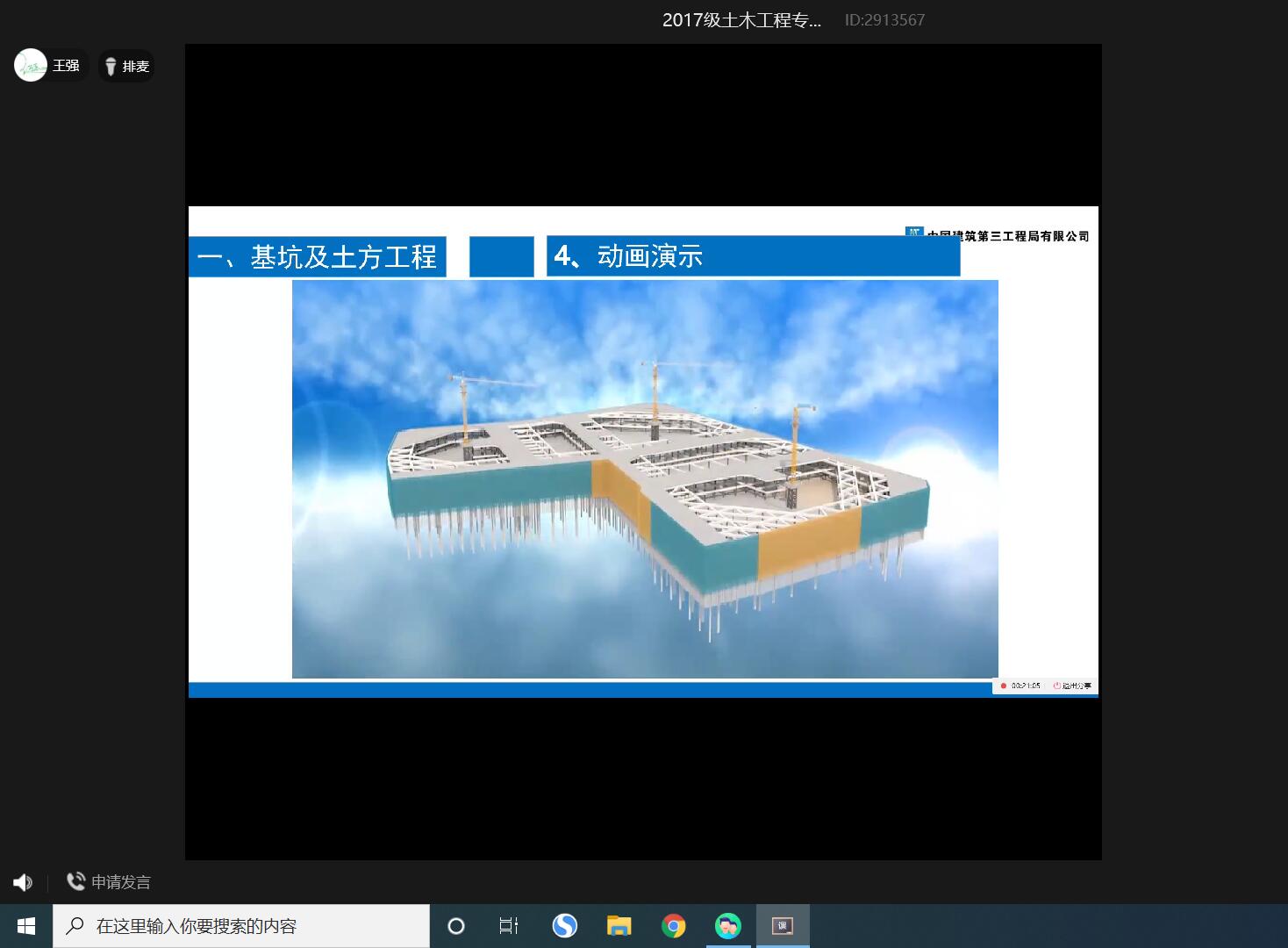 为继续贯彻学校“停课不停教、不停学”的有关要求,保证学生按时完成本学期的学习任务,经学院商议决定,2017级土木工程专业生产实习采取线上授课的方式进行。7月6日上午9:00,第三次工程施工专题讲座在QQ线上平台进行。本次专题讲座邀请了中国建筑第三工程局有限公司的项目技术总监王强为大家进行房建项目的施工技术与经验的分享,讲座主题为“中建三局某在施房建项目施工工艺讲解”。