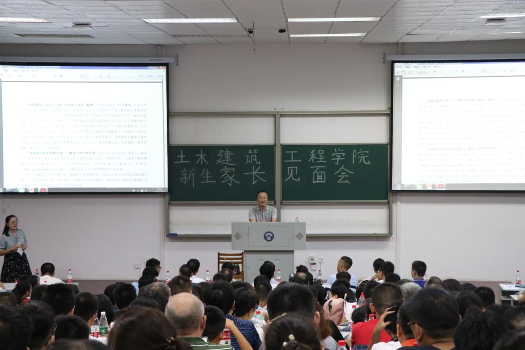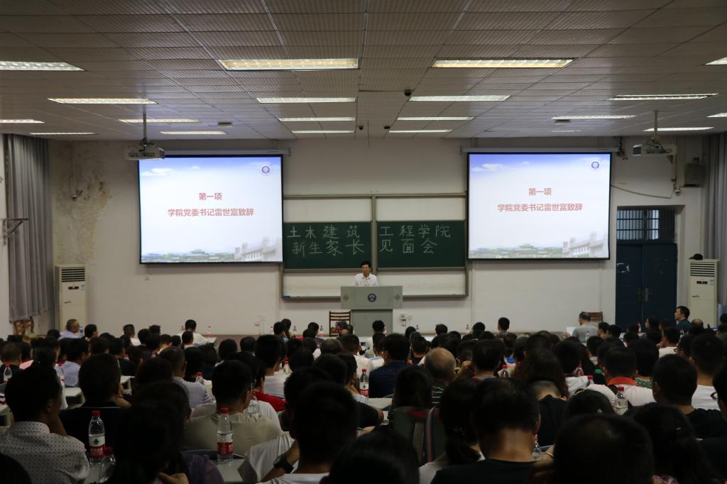 学院党委书记雷世富代表学院致欢迎辞。他对新生家长的光临表示热烈欢迎,对即将开始大学生活的新生们表示热烈祝贺。雷书记就土建学院的整体情况、土建行业的发展态势等家长们最关心的问题进行了详细介绍;他结合学院发展阐述了“勇于担当,追求卓越”的学院精神,并希望新生也能传承学院的奋斗精神,踏实前行。他在讲话中强调,“培养教育人才需要家庭、学校、社会等多方面的共同努力,学校和家庭应该相互支持,互通有无,共享信息,共同营造学生成人成才的良好氛围。”雷书记亲切的话语赢得家长们的一致认可。