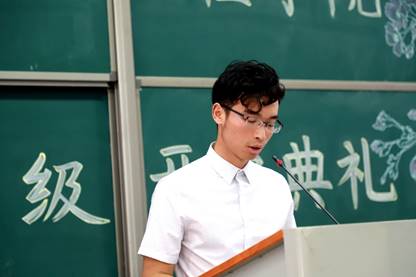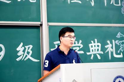 江山代有才人出,各领风骚数百年。学院的新主人李府麟同学作为新生代表上台发言。她代表全体新生表达了初入大学的欣喜之情和对大学生活的无限憧憬,倡议全体新生要学会学习、学会生活、学会感恩,尽快适应大学生活,在学院这片沃土上茁壮成长。2017级博士生徐锐作为在校生代表上台发言,对学弟学妹的到来表示热烈欢迎,他结合自己在学院多年的求学经历和新生们分享了学习生活的经验,让全体新生对即将开启的大学生活充满了信心。在讲话的最后,两位学生代表都针对即将到来的教师节为全体老师送上了贴心的祝福。