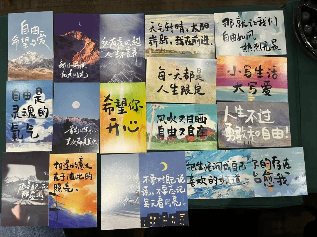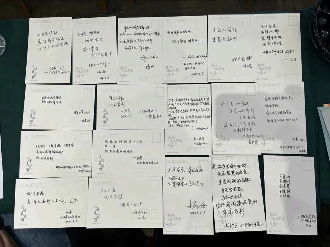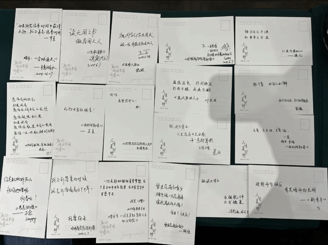 随后进入破冰环节,双方与会成员以笔名身份进行自我介绍,每人面前摆有一张明信片,大家在明信片上写下对自己,对他人的鼓励、祝福,写好后统一收集再依次抽签,交换书籍。以书会友,共沐书香,用图书传递知识,分享喜“悦”,每一本书,无论是沉甸甸的经典名著,飘逸动人的文学作品,还是真实有趣的历史纪实,都成了交流的桥梁,加深了双方的交流。