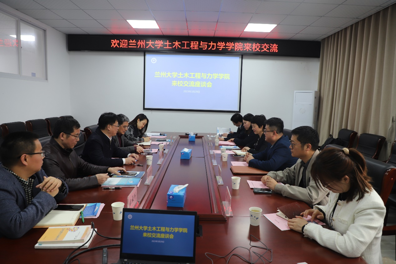 2023年3月29日下午,兰州大学土木工程与力学学院党委书记李晓莉、土木工程系主任张强强、副教授张彤炜、团委书记陈华、办公室主任王水存一行来raybet官网调研座谈,学院党委书记杨旭、院长刘泉声、党委副书记王忠海、副院长肖娴娴、岩土与道桥系系主任章荣军、党政办主任席睿参加座谈会。