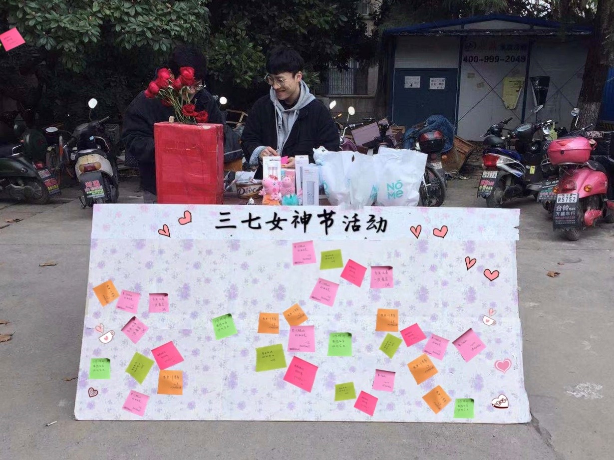 3月7日下午3点,raybet官网研会在雷竞技raybet登录入口结构楼一楼大厅门口做好精心的布置,等待着每一位女生写下自己的心愿。同时,研会的同学也为给每位女生的准备了专属福利,有保温杯、迷你太空人蓝牙音箱、自拍杆及人偶等各种好玩有趣的东西,希望每一位女生在节日里感受到温暖与快乐。