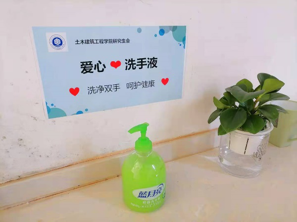 为了更好地防控疫情,土建研会还在力学楼、结构楼设置了爱心口罩应急盒,供需要口罩的同学及时取用。同时,在力学楼、结构楼各个楼层的洗手台、卫生间配置了洗手液,更好地呵护同学们的健康。