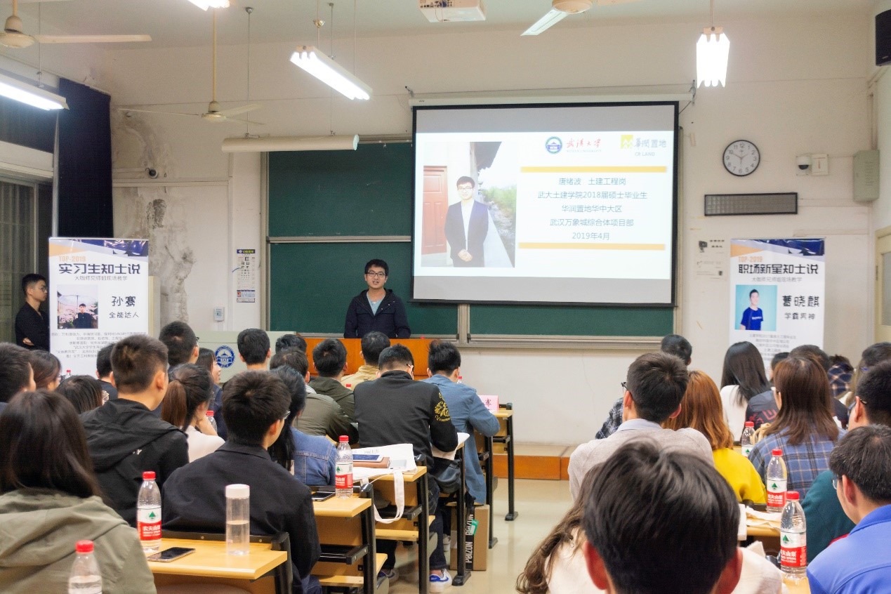 接下来,唐绪波学长与我们分享了签约华润置地的求职历程。他首先给大家介绍了所在公司的工程及施工难点,告诫大家在实习初期不要怕吃苦,要学会坚持,积极主动的去学习并做好反思和总结工作。同时,他不忘强调在求职时广撒网的重要性,这也是经验积累不可或缺的过程。