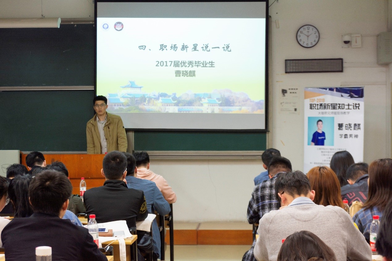 随后,曹晓麒学长向同学们说明了简历制作的重要性,作为求职的敲门砖,如何能在众多简历中脱颖而出,成功吸引HR的眼球,迈出寻求offer的第一步。学长提出在实习过程中要耐心做琐碎工作,不会的主动去问,多参加会议并做好会议记录以及要多进行自我剖析、自我总结,最重要的是要保持良好的心态。