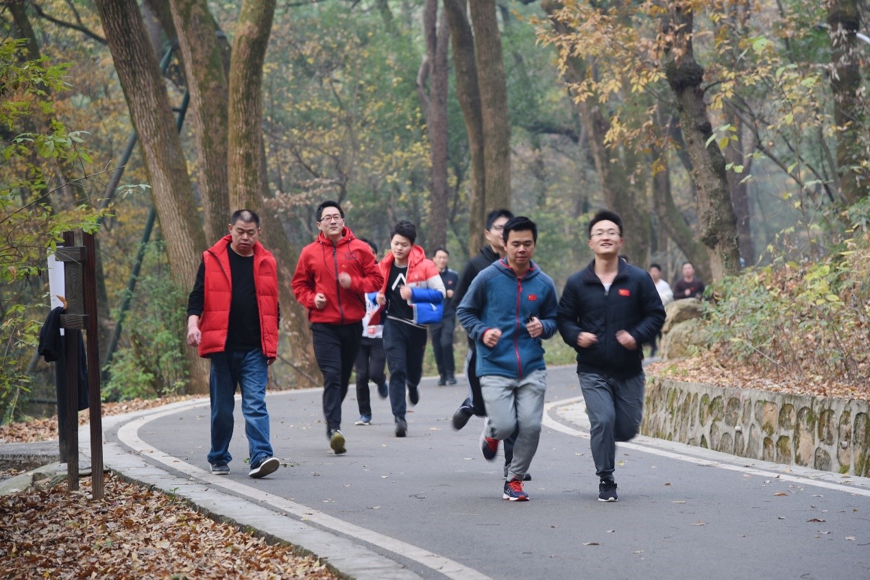 同学们提前十五分钟到达起点珞珈山庄,签到领取参赛贴纸标志,并合影留念。大家都积极地极进行热身活动,跃跃欲试。9时30分,活动准时开始,同学们像离弦的箭冲了出去。在路途之中均贴有指示标志,帮助大家明确路线。在跑步的过程中,大家逐渐发现北风没有那么凛冽,冬天也没那么寒冷,蜷缩在袖子中的手也逐渐伸展出来,汩汩暖气流变全身。同学们呼吸着珞珈山上的新鲜空气,感受着冬日的暖阳,奔跑在山路上,多么惬意。