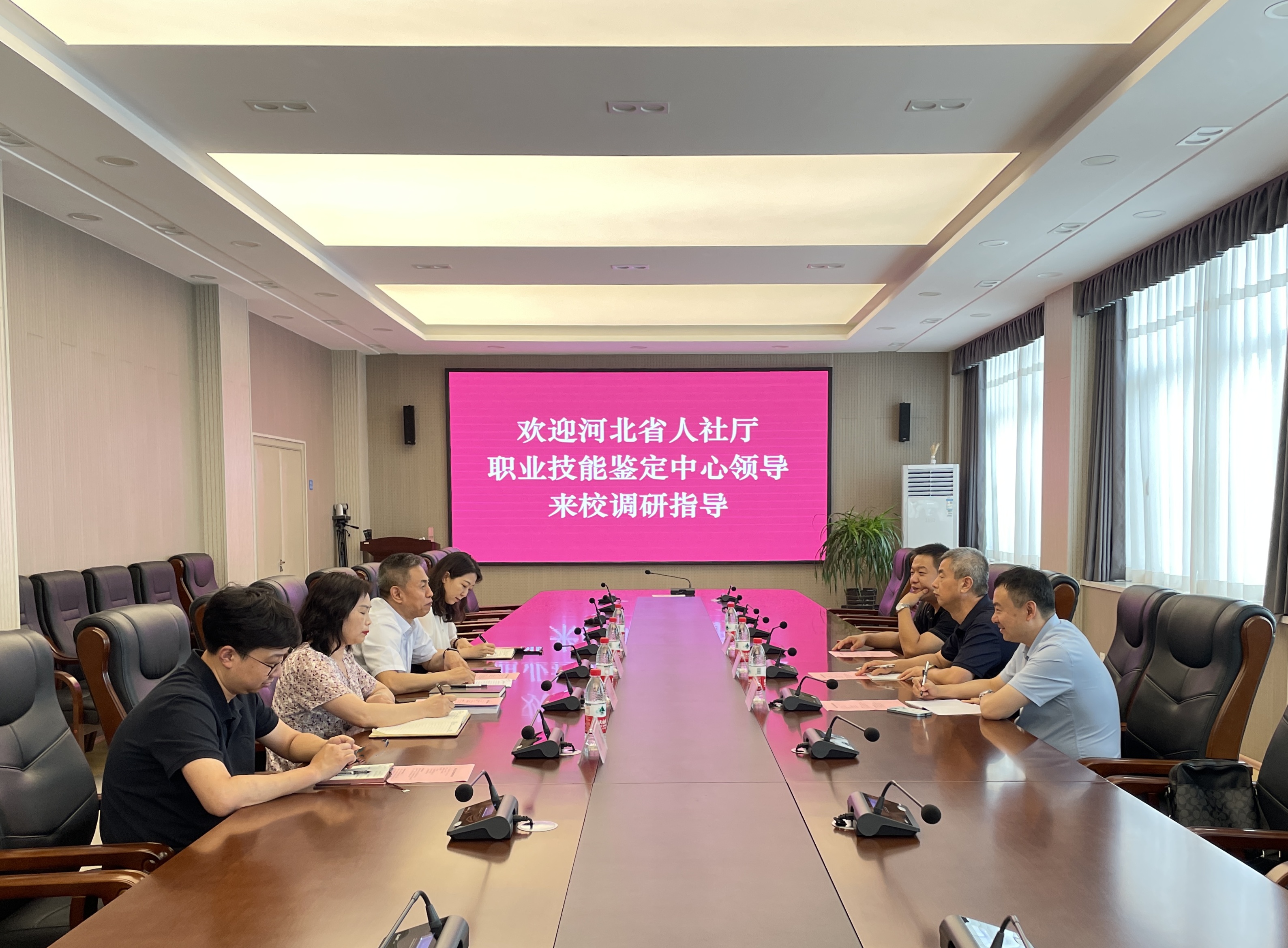 7月16日,省人社厅职业技能鉴定中心副主任李聚杰、技能竞赛部部长杜宝鑫、市人社局职业技能鉴定中心副主任英魁一行3人,来beat365就职业技能等级认定工作进行调研指导。副校长白兴武出席并主持会议。党政办公室、继续教育与国际交流中心、科研中心负责人参加此次会议。