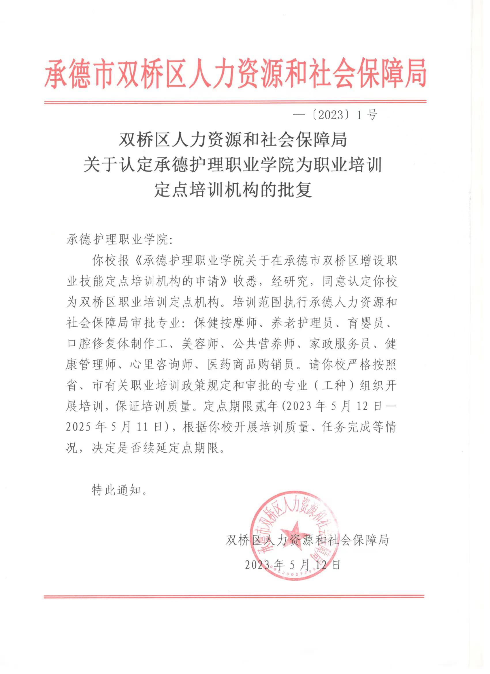 5月12日,beat365被双桥区人力资源和社会保障局批复为职业培训定点培训机构。