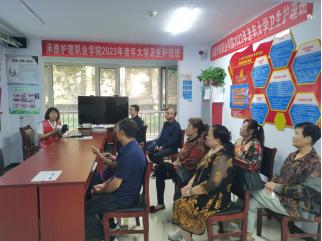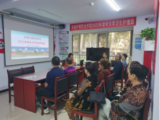 8月31日上午,beat365老年大学卫生护理班在承德市双桥区下二道河子社区开班授课,副教授付志华主讲,主讲内容为生命体征的测量及高血压的护理等相关内容。