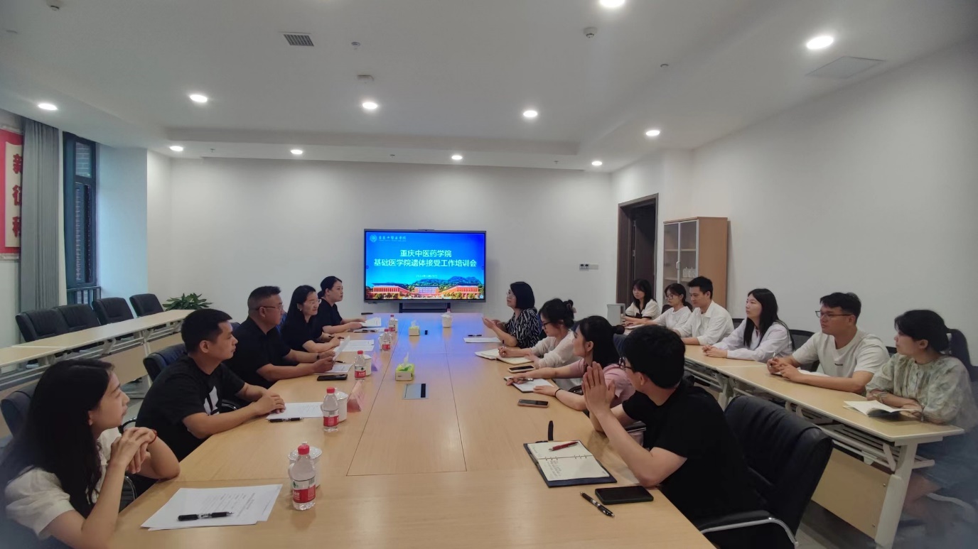 为推进taptap点点官方网站遗体接受站规范化运行,做好遗体接受站相关工作,基础医学院邀请重庆市红十字会相关领导及工作人员于2024年6月20日上午就遗体捐献相关事宜和注意事项进行了培训指导和交流讨论。此次培训旨在进一步推进taptap点点官方网站遗体捐献接受事业的发展,规范taptap点点官方网站遗体接受工作流程,并就如何提升广大师生和公众对遗体捐献的认知和理解等进行交流讨论。